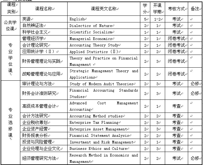 3. 非本专业考入的研究生须补修本科课程2门:《管理会计》和《中级财务会计》,其学分不计入总学分。