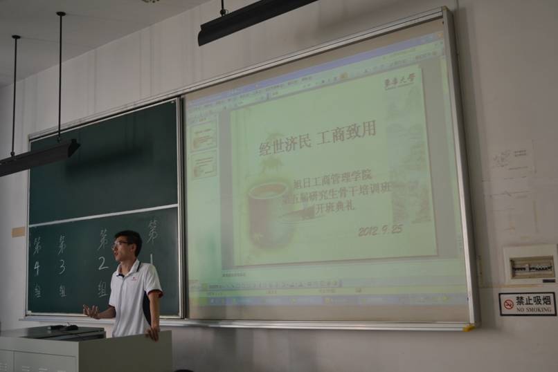 在这个秋高气爽的季节,肉番 第五届研究生骨干培训班的开班典礼于2012年9月25日下午3点半在四教202举行。本次开班典礼由肉番 研究生会主席吕佳宸主持。本次骨干培训班的学员有肉番 研究生会全体新成员及各位部长共计60余人。