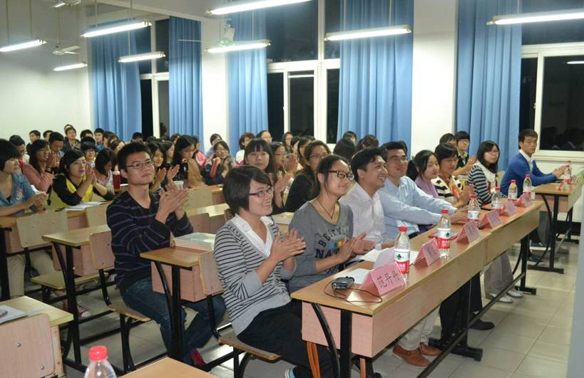 其后,六位学生嘉宾各展风采,于简短的话语中凝练精华,于丰富的经验间分享心得。他们的精彩演说,在2012级研究生新生的学术之路上起到了重要的模范先锋作用。曾多次获得数模竞赛国家级奖项的范丹丹学姐,以其丰富的参赛经验,与同学们分享了她对数学建模的总体看法,以及建模过程中需要准备和注意的事项;曾获得研究生英语竞赛国家级奖项的陈悦学姐和施文学姐分别从英语积累和应试技巧两方面剖析了英语竞赛,与同学们分享英语学习心得以及国外交流感受;曾获得“小挑战杯”上海市金奖的满富委学长主要着眼于从创业计划书内容的排版以及创新等方面解读小挑战杯的比赛过程;曾发表多篇学术论文的汪旻学姐则重点阐述了学术研究的重要性,并就如何运用文献搜索引擎给出了建议和帮助;最后,顺利获得我校硕博连读的罗楚学姐以其直博的经历向同学们介绍了我校硕博连读的基本情况,对研究生学术生涯规划提出了相关建议。