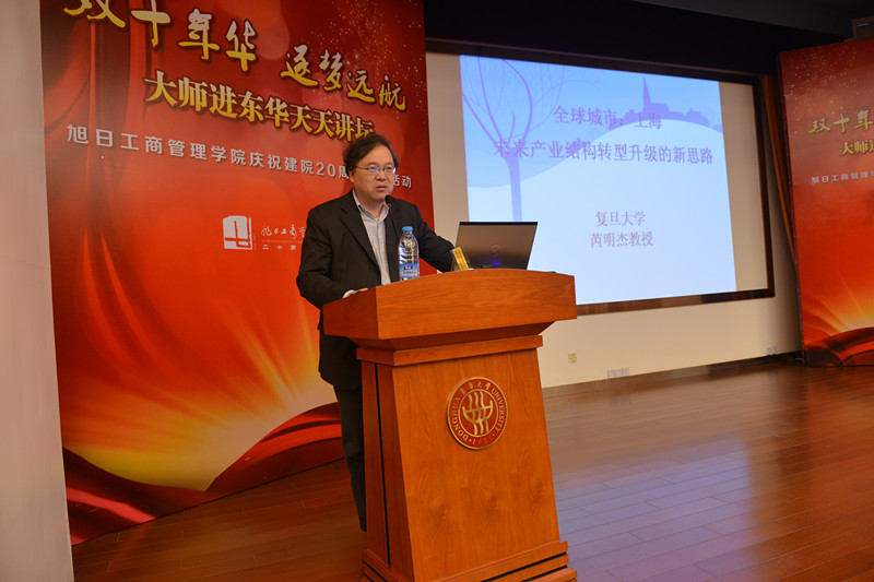 “双十年华 逐梦远航”大师进东华天天讲坛继昨日首讲之后,2014年10月14日晚18点30分,来自肉番 党校的学生、研究生、历届校友和部分教师代表再次相聚旭日楼400报告厅,迎接来自复旦大学肉番 产业经济学系主任、国家重点学科产业经济学学科带头人,复旦大学工商管理博士后流动站站长,博士生导师、著名经济学家芮明杰教授带来第二讲:全球城市,上海未来产业体系发展与结构调整战略思考。