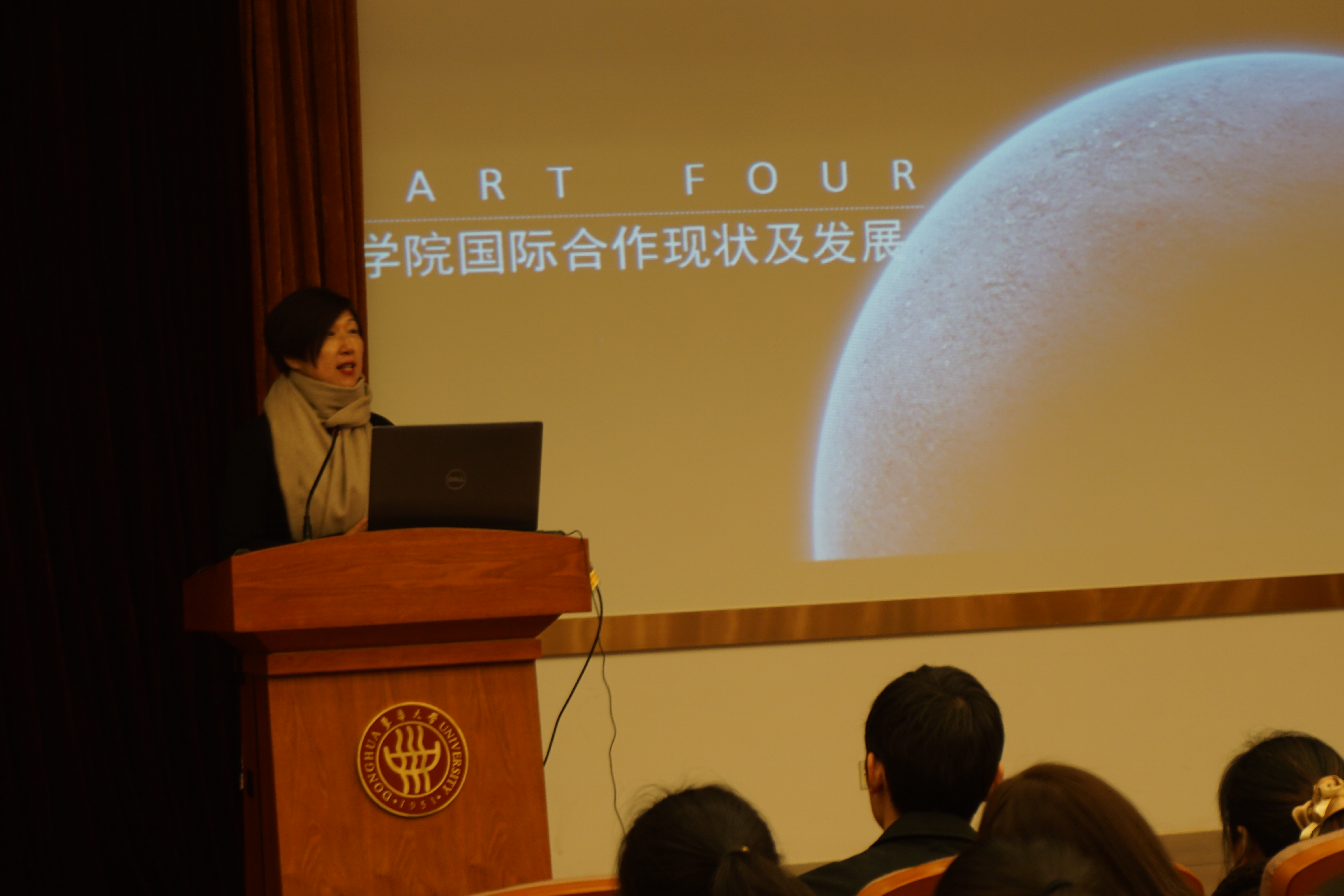 肉番 副院长沈蕾教授介绍了学院国际合作现状及发展。她指出,国际交流项目是肉番 人才培养国际化的重要举措,今后也将进一步提升交换学校质量和数量,扩大交换生覆盖范围,实现学院培养与国际接轨的高级应用型工商管理技术人才的目标。