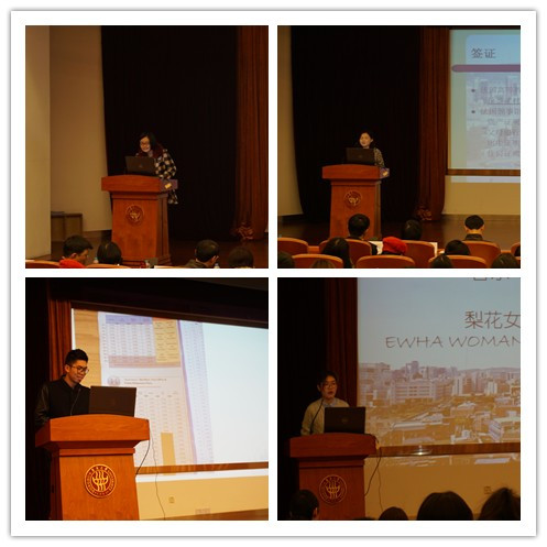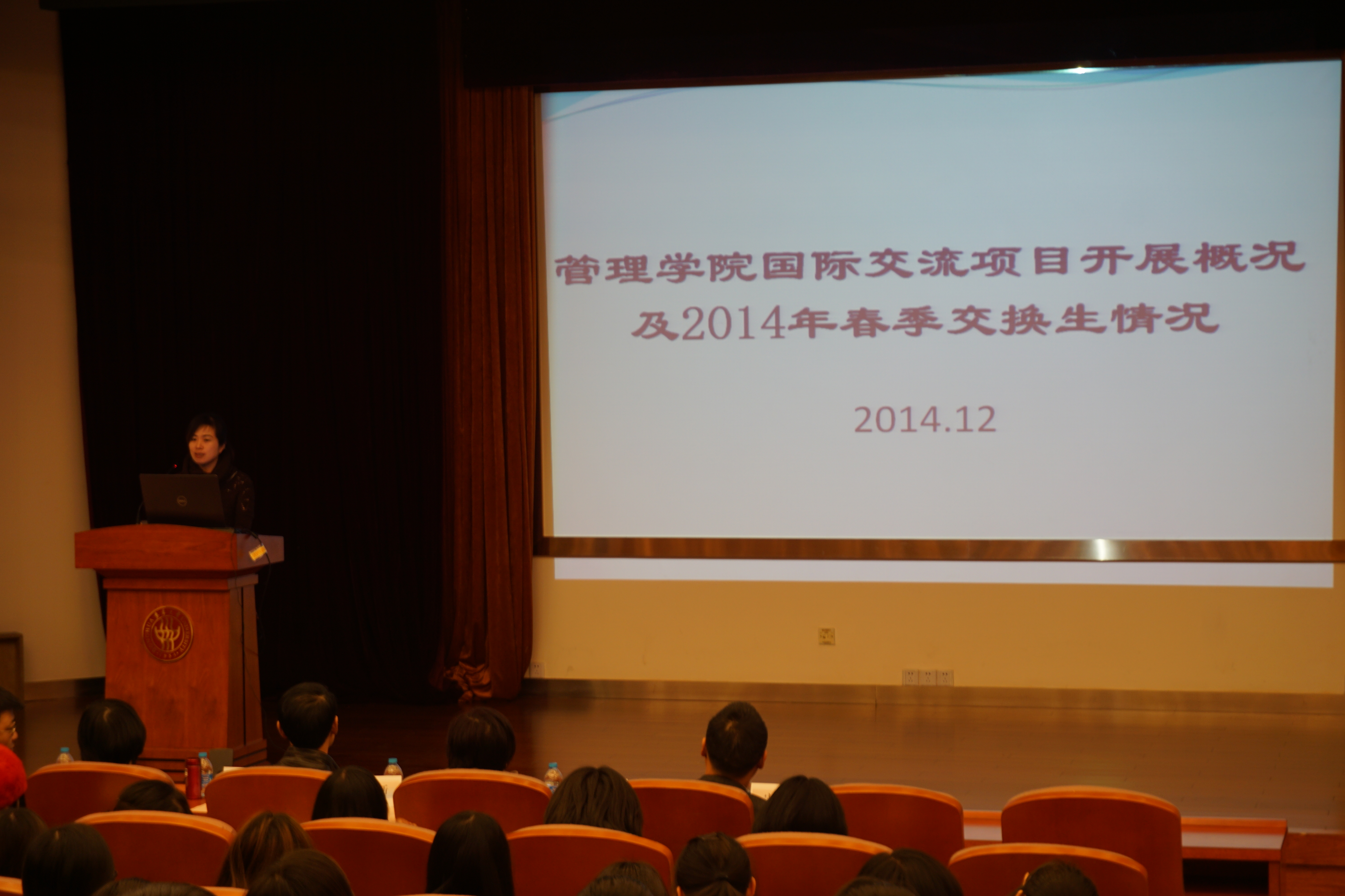 本次总结会邀请了2014年春季交换项目荷兰鹿特丹大学交换生代表崔笛、法国巴黎高等商学院交换生代表邵菁、美国蒙大迪斯尼项目代表毛燠尘、韩国梨花女子大学交换生代表沃佳分别作项目总结发言。随后播放了会前收集的2014年秋季交换生以及国际交流项目毕业生代表王瑞思、石敏晶的现状视频,以更加直观的形式展现了交换生的学习、生活情况以及参与交换的收获与成长。