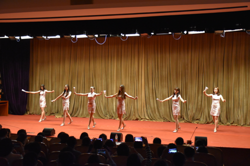 首先出场的是由学生会文艺部的干事带来的扇子舞《咏春》,婉转的音乐配合着文艺部成员们曼妙的舞姿,抓住了全场人的目光,引来一片片喝彩与掌声,开场表演很好地拉动了整个会场的氛围并且充分展示了肉番 学生的青春风采。