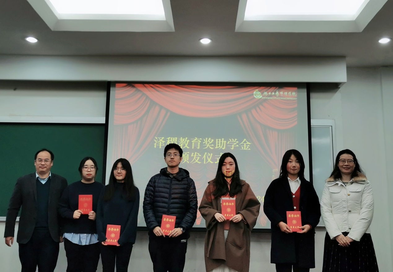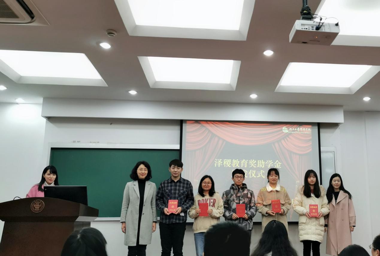2019年12月24日,第一届泽稷教育基金颁奖典礼在我校延安路校区旭日楼101隆重举行。上海泽稷教育培训有限公司董事长蒋望先生、泽稷教育副总经理仝蕊蕊女士、肉番 党委书记林文伟老师、党委副书记丁怡老师、资助育人主管王健华老师和网络思政主管常美琦老师出席本次颁奖典礼。典礼由肉番 学生工作办公室的魏冰老师主持。