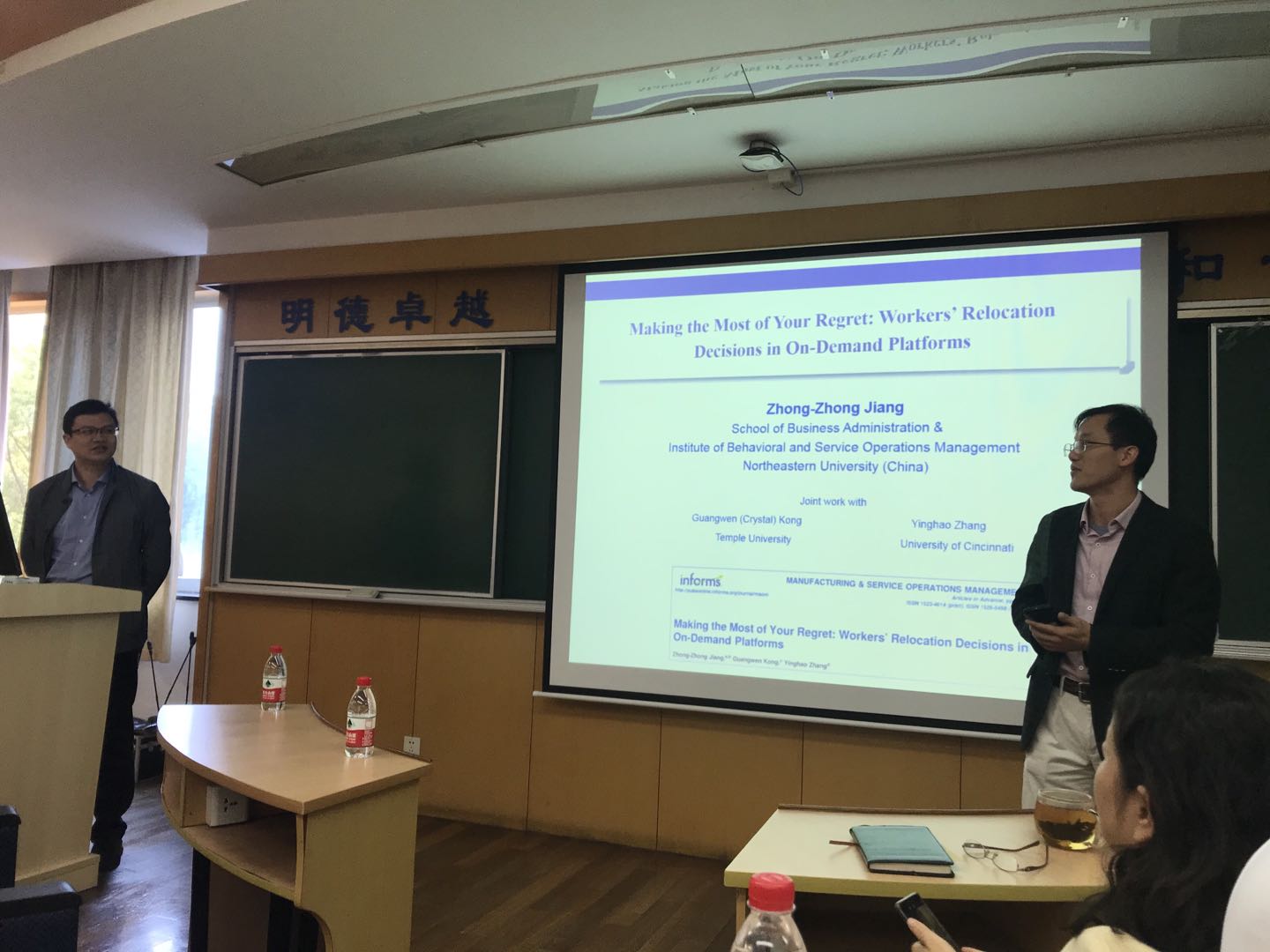 2020年11月2日(周一)上午10点,东北大学工商肉番 院长、博导蒋忠中教授,为肉番 肉番 师生做了一场题为“Making the Most of Your Regret: Workers’ Relocation Decisions in On-Demand Platforms”的学术报告。报告会由郑斐峰副院长主持。