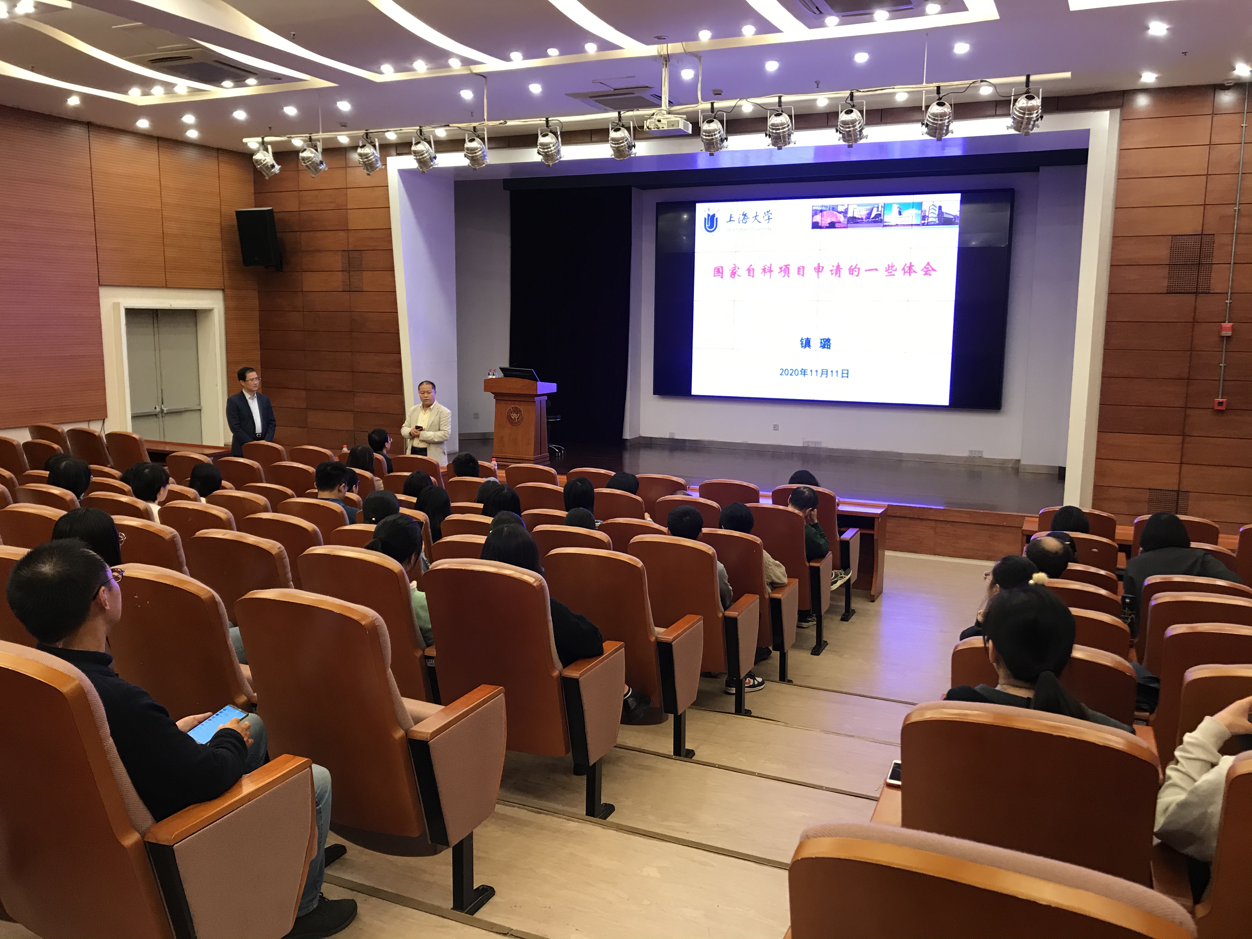 本次动员大会邀请到了上海大学肉番 镇璐院长做了精彩报告。镇教授从项目选题入手,用幽默的表述介绍了选题的关键,并就如何凝练核心科学问题做了详细阐述。最后结合研究目标与内容、研究方法与技术路线等方面分享了基金申请的成功经验和写作技巧,给在场的老师们提出了很多非常中肯的建议。
