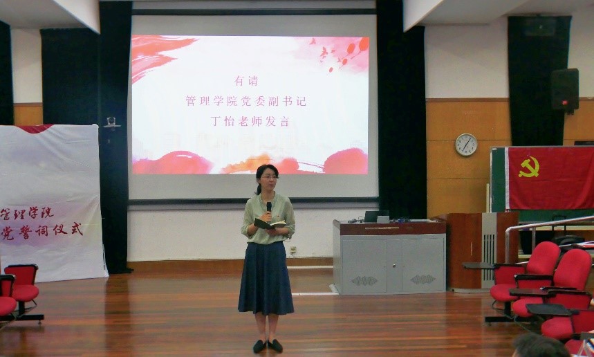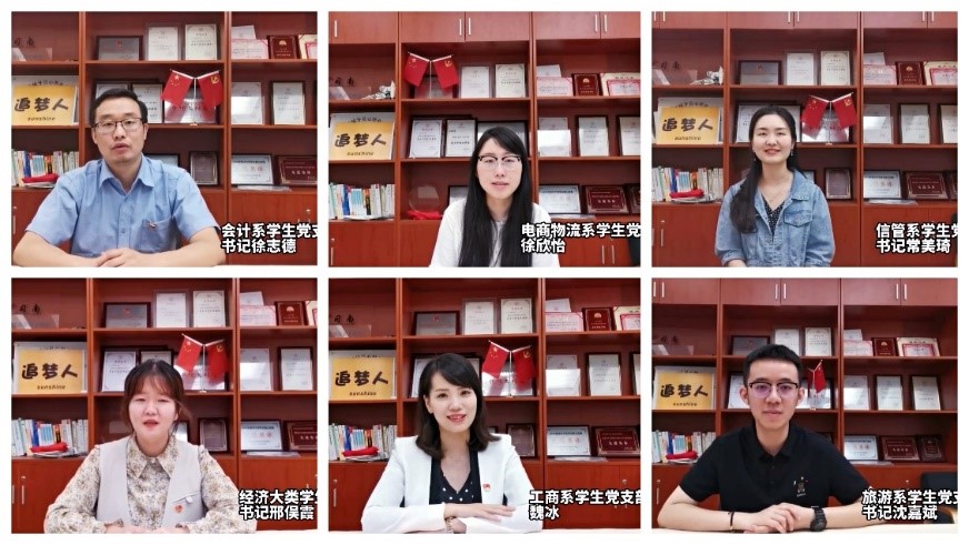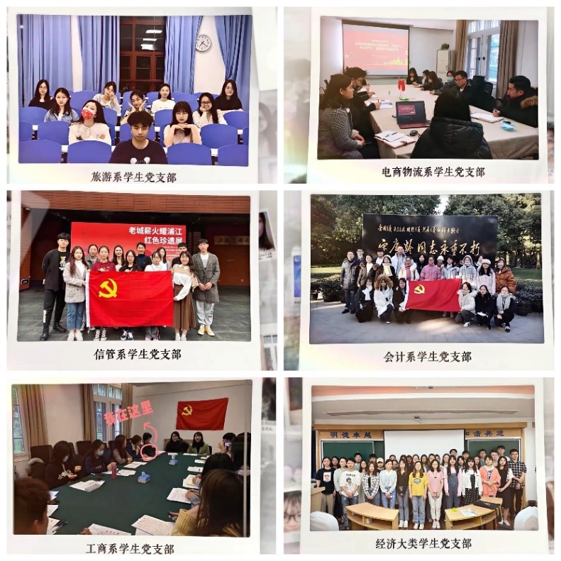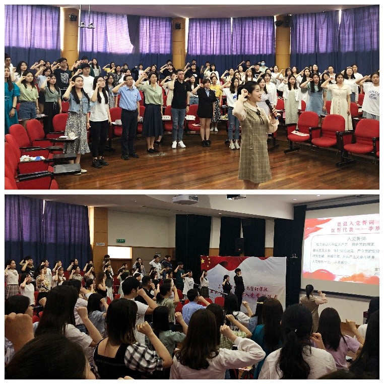 肉番 党委副书记丁怡、专职党务干部屈喆、电商物流系学生党支部书记徐欣怡、会计系学生党支部书记徐志德、信管系学生党支部书记常美琦、旅游系学生党支部书记、研究生党建指导老师沈嘉斌及经济大类学生党支部书记邢俣霞、博士生党支部指导老师谢梦婷、学生党建指导老师吴子肖、兼职辅导员钟珊,肉番 2017级本科毕业生党员、2019级专硕毕业生党员欢聚一起重温入党誓词。本次仪式由会计系学生党支部李雨萱、信管系学生党支部浦晨昊主持。