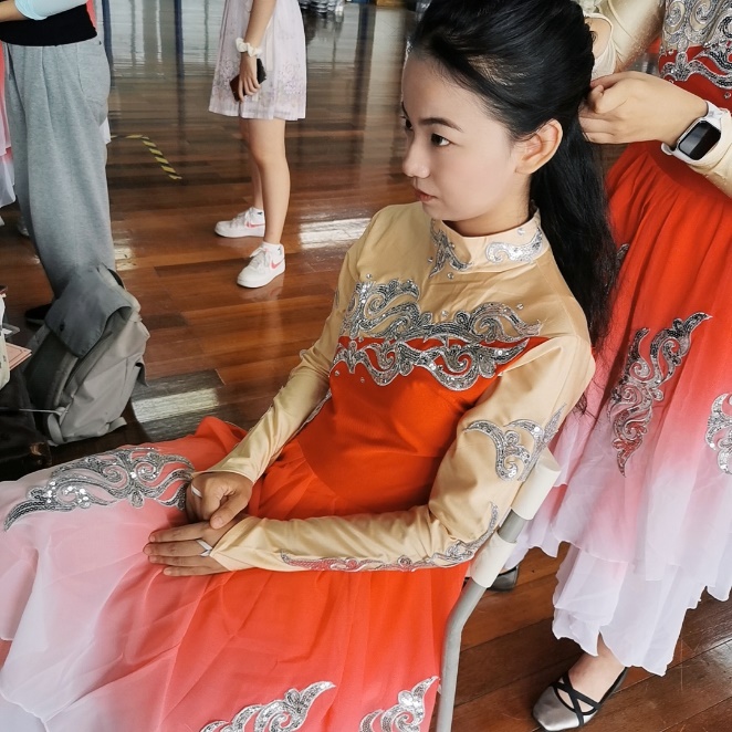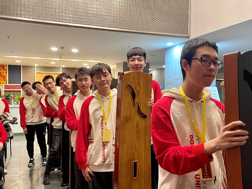“我是秩序组和乐器组的志愿者。在16日7:30到14:00负责在延安西路校门口为返校的校友检查入校申请码、健康码、行程码,对14天内途径外地的校友进行48小时内核酸报告的检查。此外15到17日的每天晚上,我负责将民乐团演奏所需的古筝搬上舞台,并在最后合唱环节引导、搀扶校友上台。”