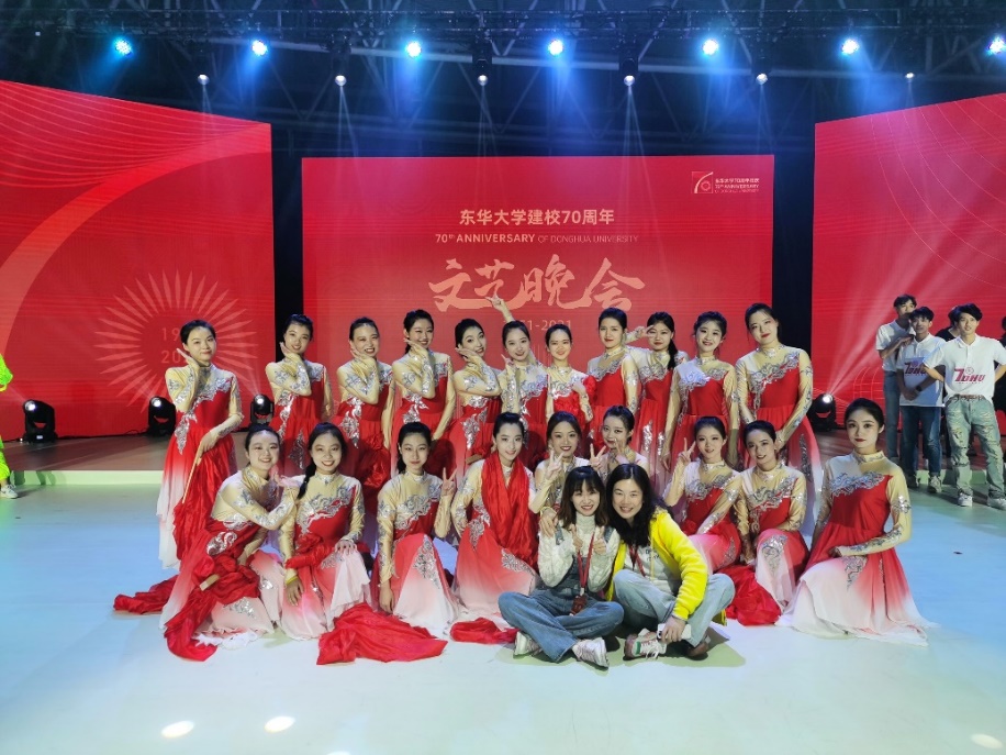 “有幸在校庆大会上作为领诵参与学生献词环节,为我在母校的演艺生涯添上了浓墨重彩的一笔。在这期间,排练免不了辛苦,然而与收获的友情以及回报母校的成就感相比,所有的汗水都微不足道。栉风沐雨七十载,薪火相传创佳绩,东华人始终怀揣衣被天下,惠泽众生的理想,做祖国和人民最需要的事业。‘不为一己求安乐,愿作别人嫁衣裳’这句词我曾在不同的场合说过不止一次,然而时诵时新,奉献精神,大局意识将成为刻在我们骨子里铮铮作响的最强音!”