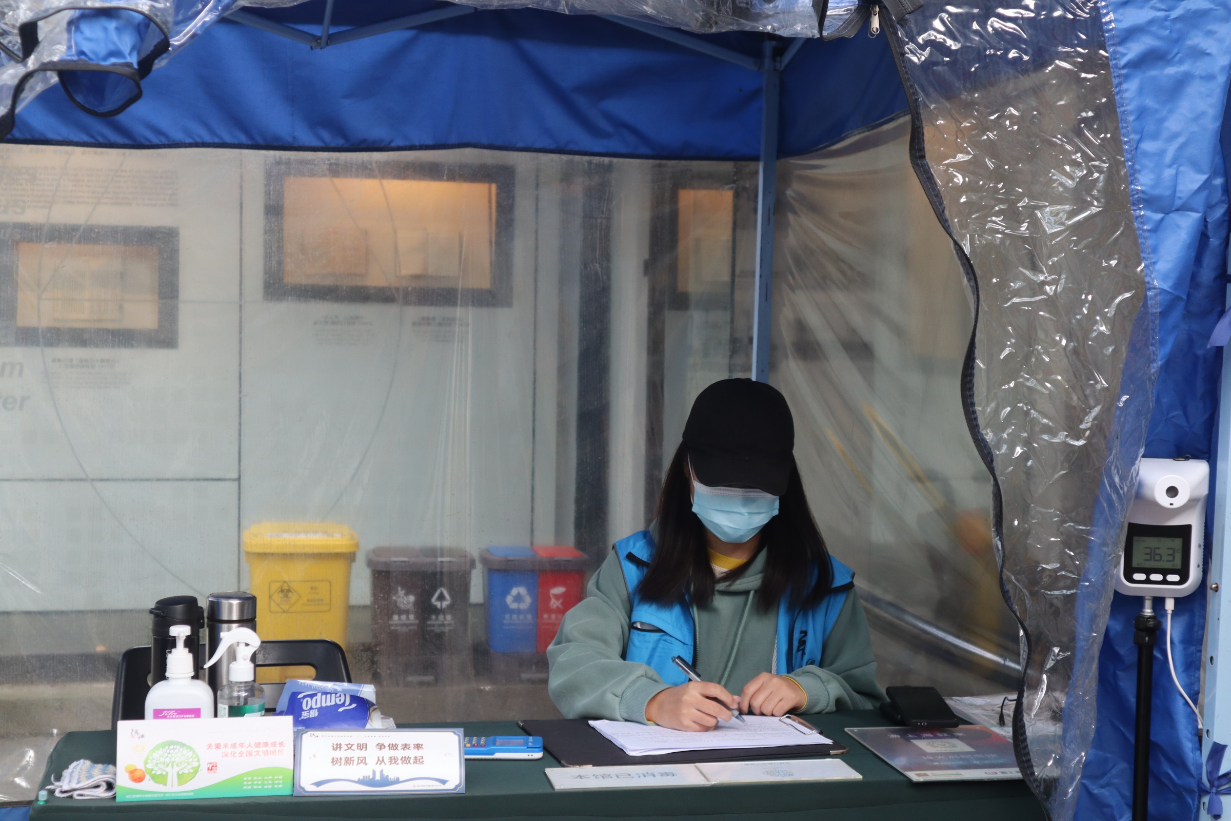 (志愿者进行工作签到和信息登记等)