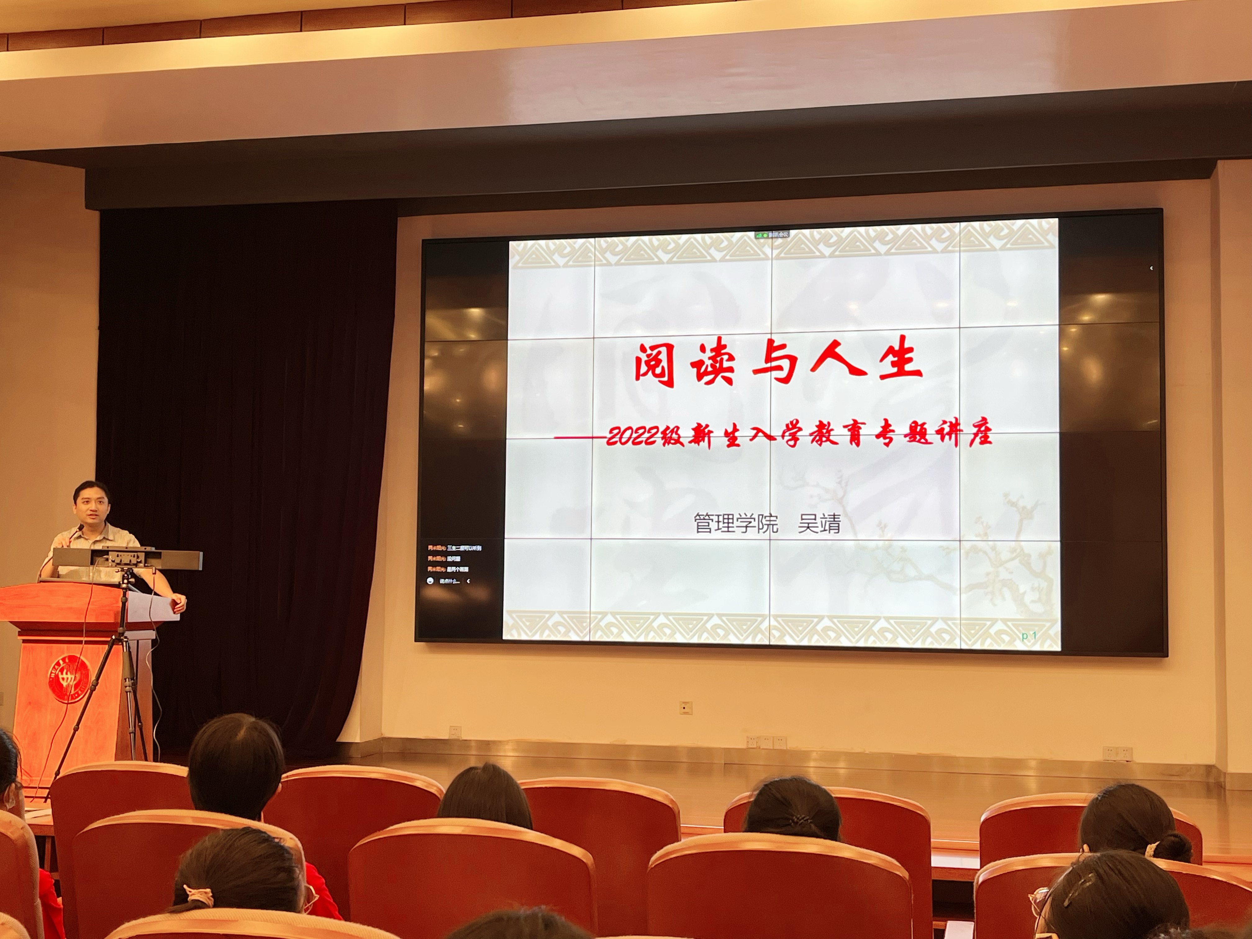 书香致远,墨卷至恒。在数字化阅读日益普及的当下,为提升同学们对传统阅读方式的热情,培养同学们的人文素养,2022年9月14日上午,肉番 开展了新生入学教育专题讲座——《阅读与人生:爱读书、读好书!给阅读一点时间》。本次活动的主讲人为学院办公室主任吴靖老师,肉番 2022级全体本科新生参与其中。