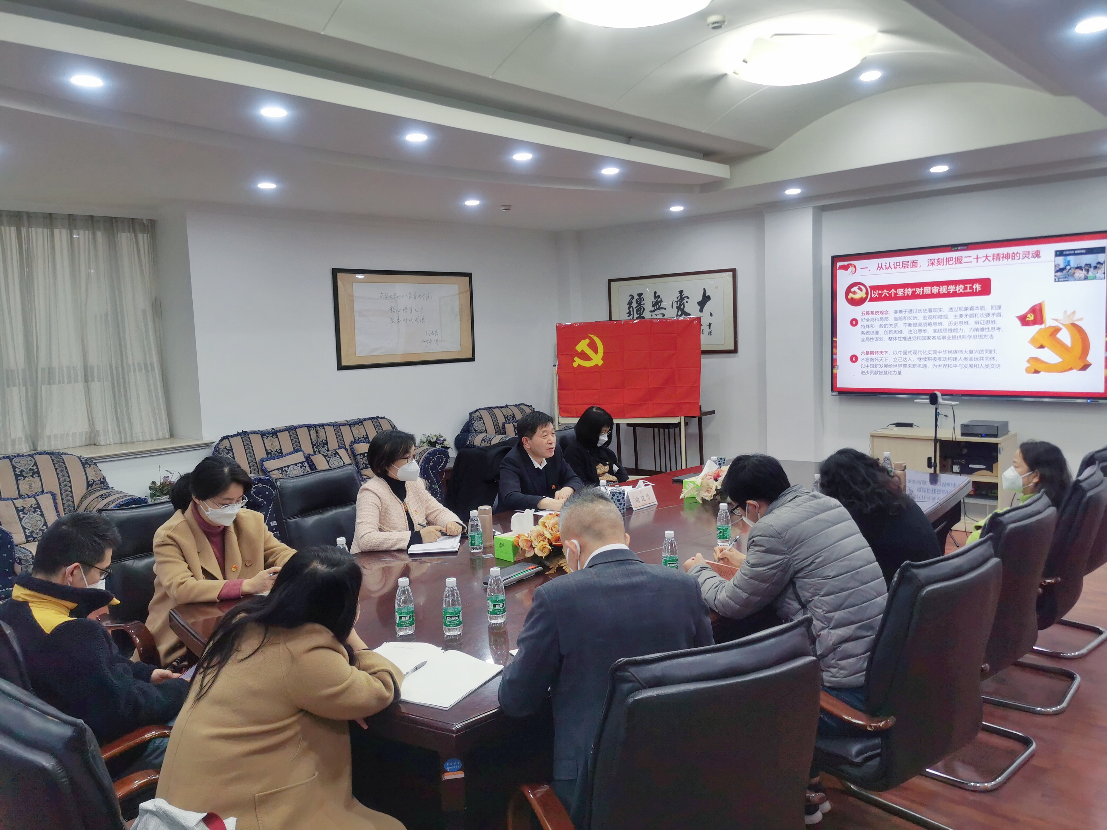 围绕全面贯彻落实好党的二十大精神,推动学校高质量发展,俞建勇指出要以习近平总书记提出的“六个坚持”对照审视学校工作,把推动高质量发展作为落脚点;以“三个务必”,深刻领悟二十大报告的精神密码,并着重强调要党组织要善于自我革命,增强“自我净化、自我完善、自我革新、自我提高”的能力,不断形成风清气正的党内政治生态。最后,他希望全体师生坚定信心、埋头苦干、团结奋斗,以建设“国内一流,国际有影响、有特色的高水平研究型大学”为己任,为全面建设社会主义现代化国家、全面推进中华民族伟大复兴而不懈奋斗!