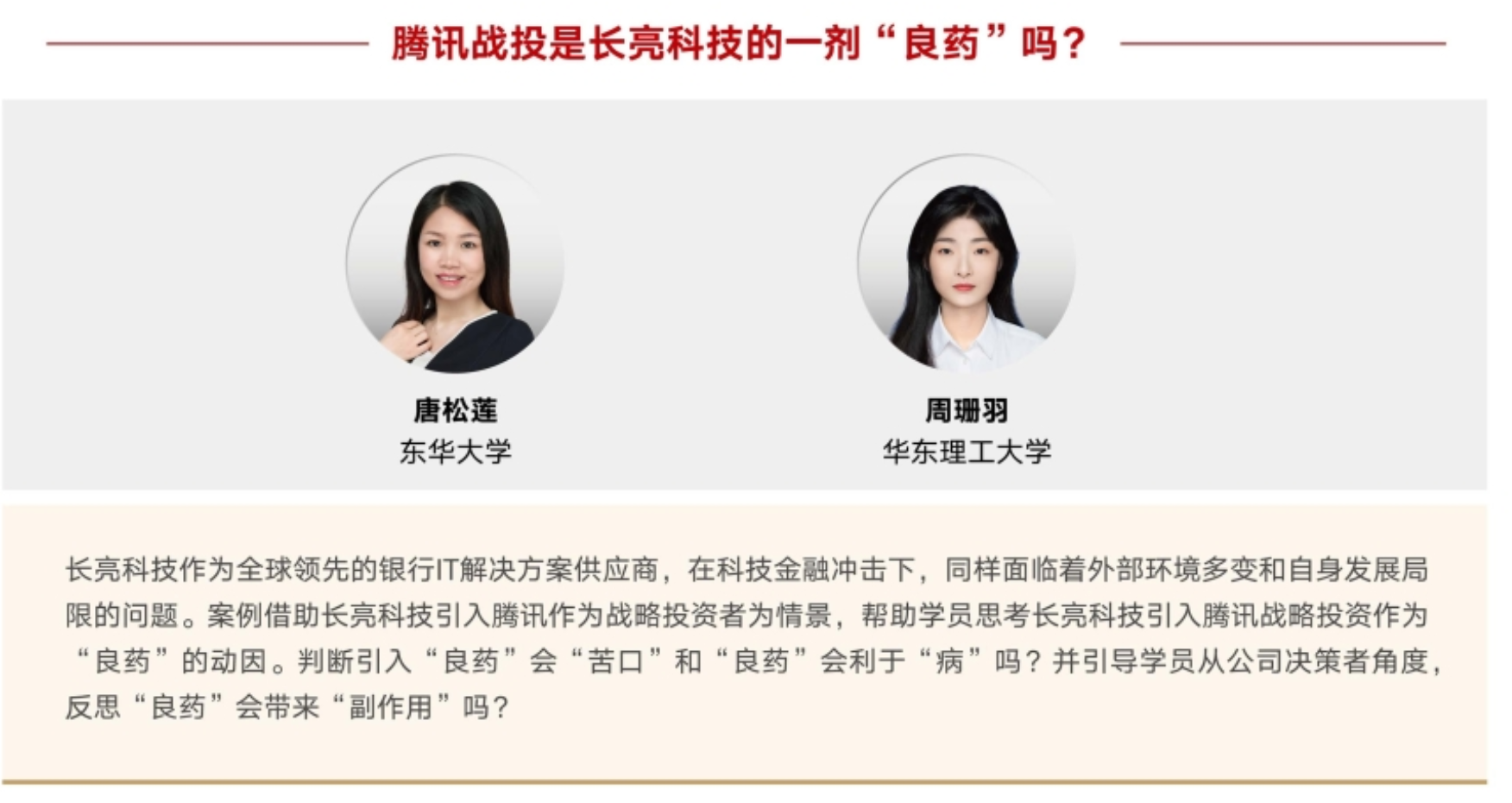 2022“中国工商管理国际最佳案例奖”评选活动今日揭晓,我院工商管理系唐松莲教授的案例“腾讯战投是长亮科技的一剂良药吗?”喜获二等奖,此次获奖实现了学院在中欧国际最佳案例奖中“零”的突破,同时该案例已经于2022年8月入选“中国工商管理国际案例库”。