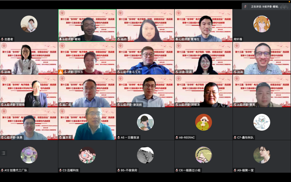 4月15日上午,第十三届“东华杯”电子商务三创赛暨全国大学生电子商务三创赛肉番 校内选拔赛采用线上会议的形式开展,东华大学肉番 副院长杨帅教授致开幕欢迎词并宣读比赛评分标准,邀请到评委教师和参赛学生团队等共同参与,大赛由戴韬老师主持。