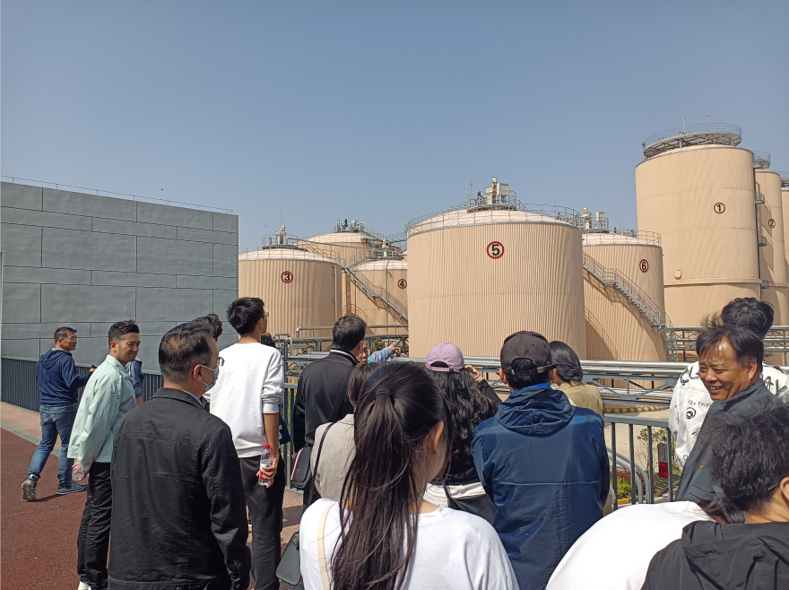 支部成员们首先参观了上海生物能源再利用中心(三期),在工作人员的介绍下学习了湿垃圾的处置流程。该中心项目采用成熟先进的“预处理+高低浓度协同厌氧”的主体工艺,能够将综合残渣率有效降低至15%以内。随后,支部成员们参观了基地自动化的检测室、黑水虻处理车间,了解了如何利用湿垃圾产生的再生资源进行黑水虻的生产繁殖和工业处理。
