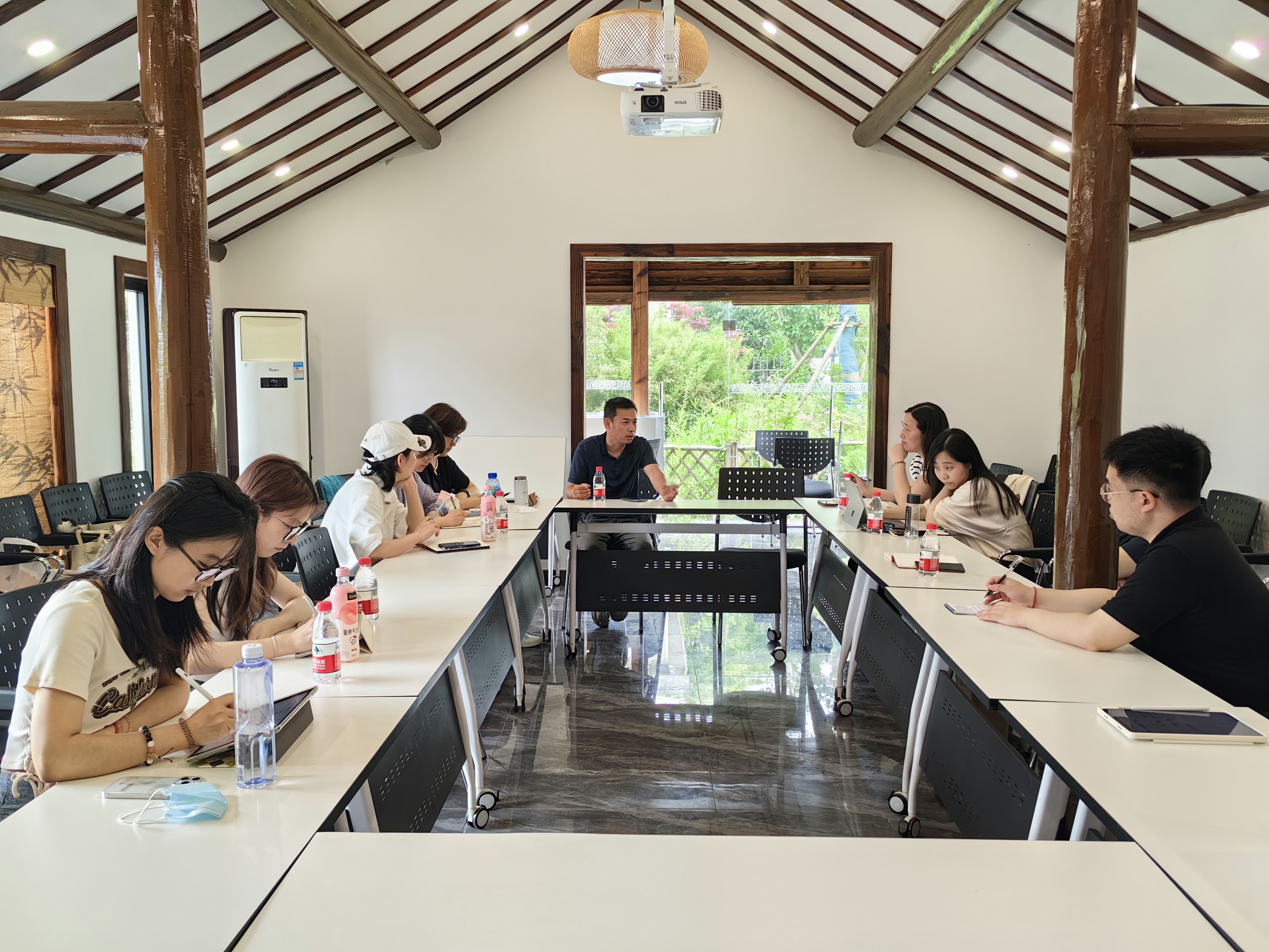 顾伯伯民宿负责人对崇明民宿经营现状、顾伯伯发展历程、收入情况、接待容量、合作社模式等基本情况作了详细介绍,着重指出了顾伯伯在利益分配、房源升级、发展模式等三个方面的问题,支部党员教师分别从股份制分红与按劳分配相结合的利益分配机制的设计、统一制定设计方案及提供资金、探索农作物景观化等角度给出了具有专业性的建议。在民宿走访过程中,进一步提出营销策略的优化,建议利用后台数据科学分析,进行游客画像,进一步完善民宿营销方式。