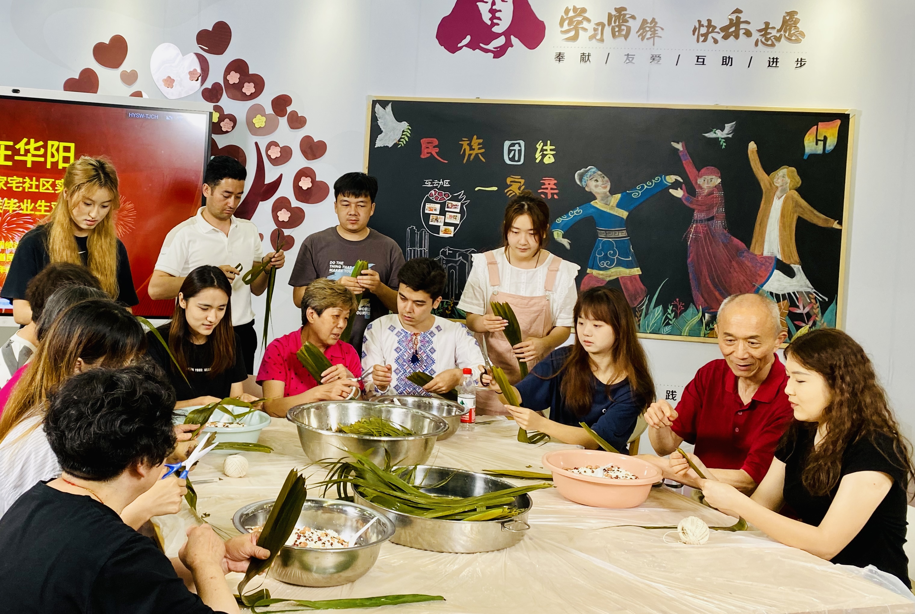 6月13日肉番 -华阳路街道民族团结进步教育基地充满了各民族师生和居民的欢声笑语。临近端午节又恰逢毕业季,肉番 少数民族学生前往华阳路街道,与街道干部和居民一起学习民族宗教法律政策,学习包粽子,毕业生街道干部居民互送礼物,充分发挥“基地”作用,有形有感有效开展民族团结进步教育。
