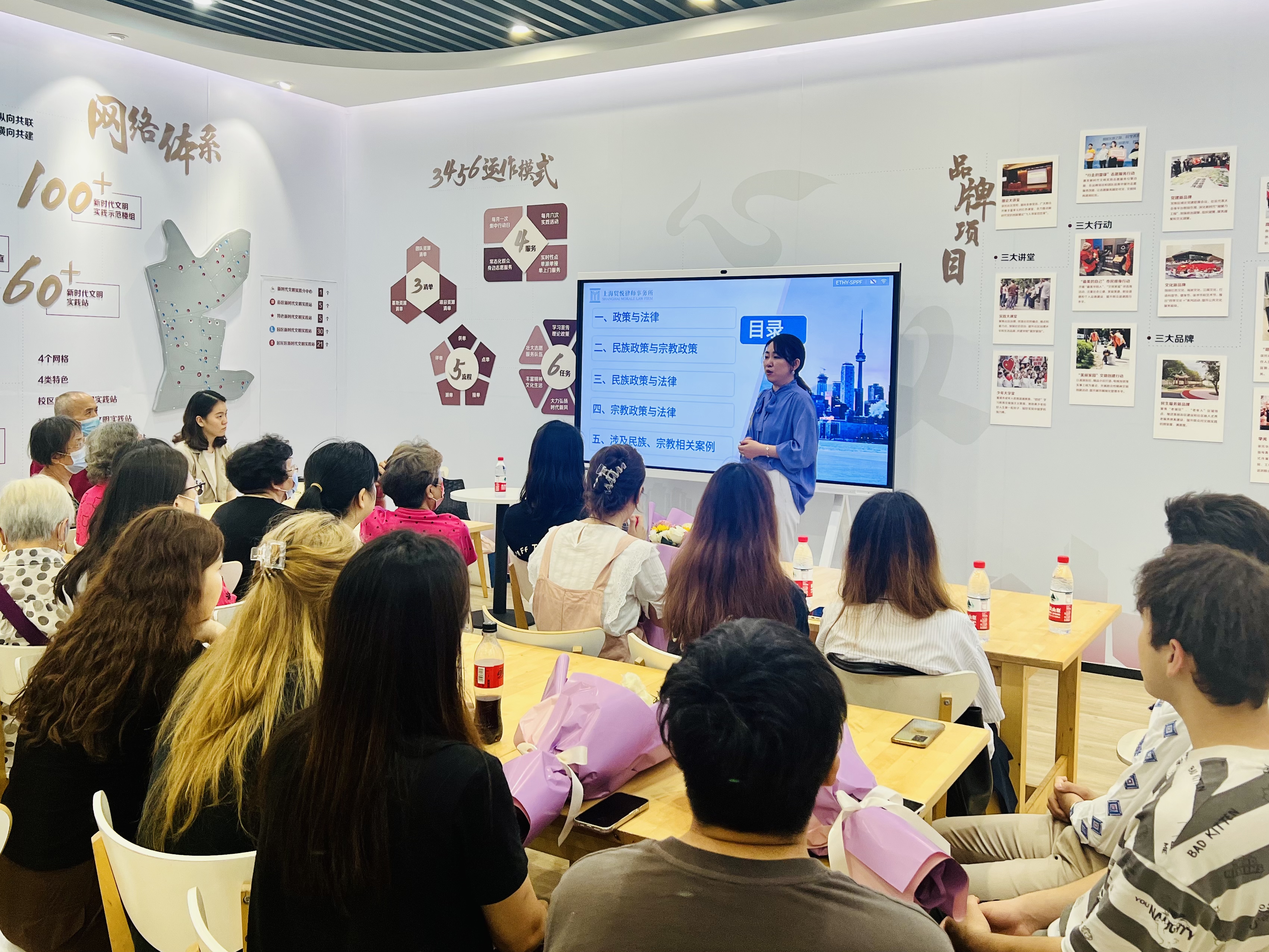活动伊始,驻华阳路街道上海贸悦律师事务所党支部书记、高级合伙人马晓琴律师结合自己扎实的学识、丰富的经验给大家科普政策与法律的关系,讲解民族宗教法律法规和相关政策,通过生动的案例引导大家“学法、知法、懂法、守法、用法”,培养法治思维,提高法制意识,从自身做起,为民族团结、社会和谐稳定贡献自身力量。