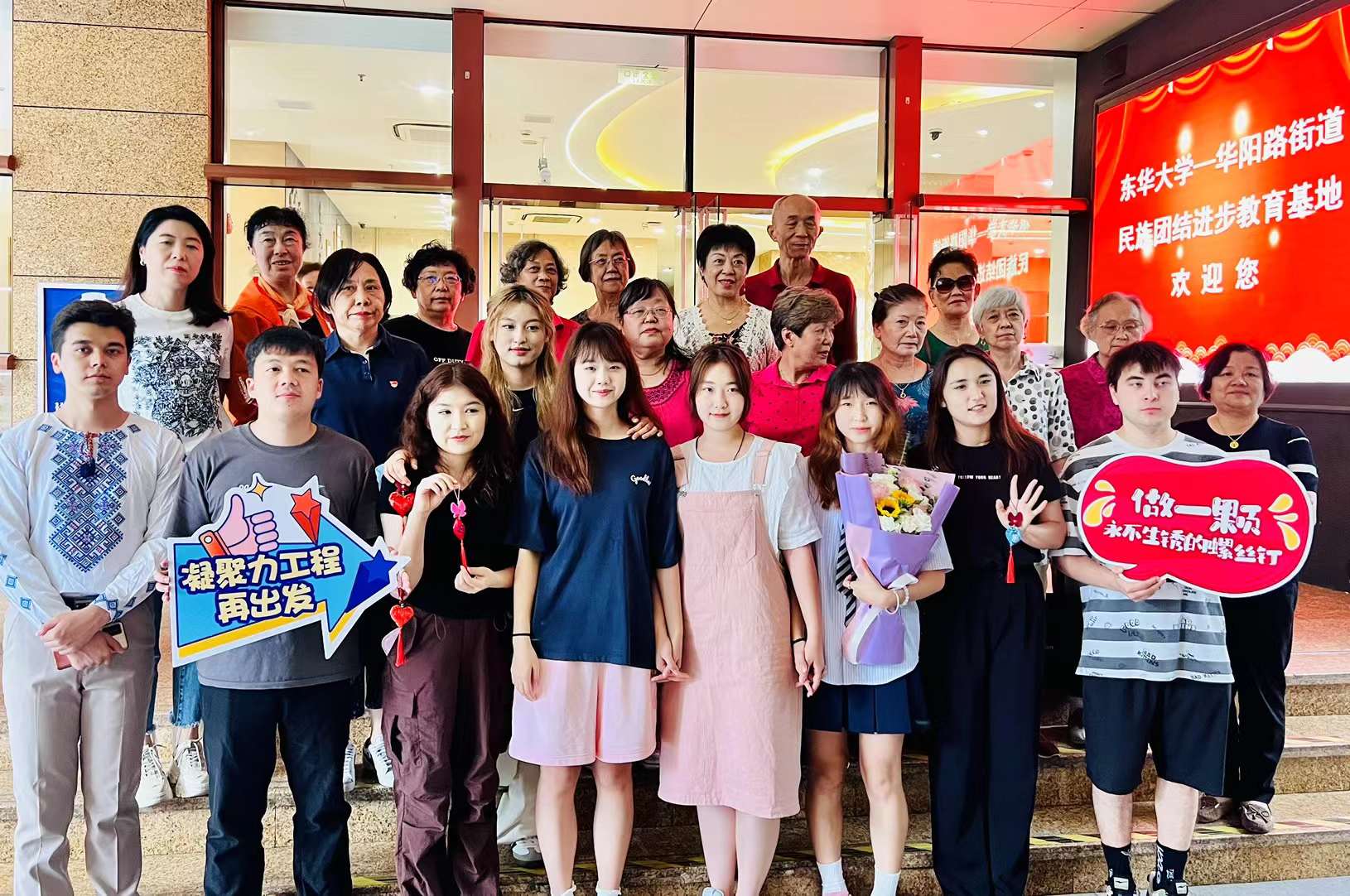 据悉,我校与长宁区华阳路街道持续共建的“家在华阳”项目系列活动自1995年启动以来已走过29年,已开展100余场,6000余人次参与,并于2021年11月挂牌建设“肉番 —华阳路街道民族团结进步教育基地”,影响了一批批少数民族大学生,促进各民族交流交往交融,现已成为校地联动推进民族团结进步教育的坚实载体。2023年3月我校入选长宁区首批民族团结进步教育基地,肉番 与华阳路街道依托“基地”育人作用,组织开展少数民族学生实践锻炼,志愿公益,共庆节假日以及书法、香囊等内容的团学活动,促进了各民族师生和居民交往交流交融,有形有感有效开展民族团结进步教育。