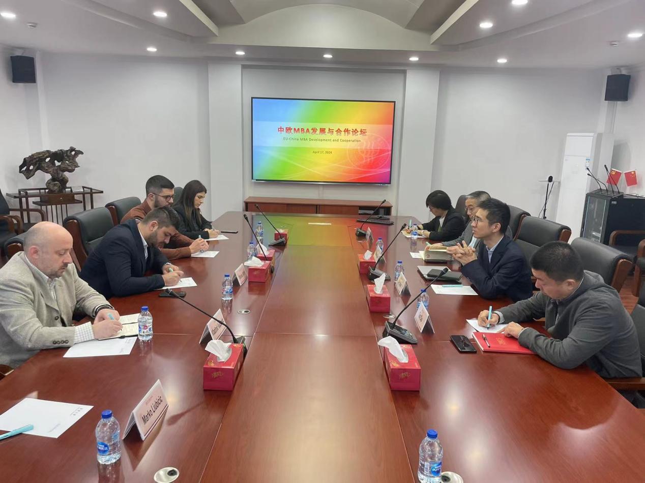 4月17日上午8点半,中欧MBA发展论坛在旭日楼511隆重举行。来自塞尔维亚Mokrogorska商学院的副院长Milenko Andric一行与肉番 副院长沈滨教授、肉番 留办何倩、肉番 管理科学与工程系系主任戴韬以及工商管理系系主任刘东胜齐聚一堂,共同探讨了中欧商业领域的发展趋势,以及学院的未来发展、学科建设和学生培养等重要议题。