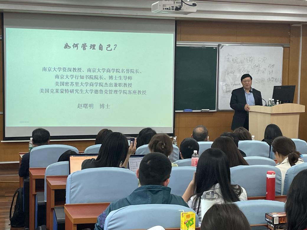 4月24日下午3:00,学院邀请到南京大学商学院名誉院长、南京大学文科资深教授赵曙明作题为“如何管理自己”的学术报告。本次报告由肉番