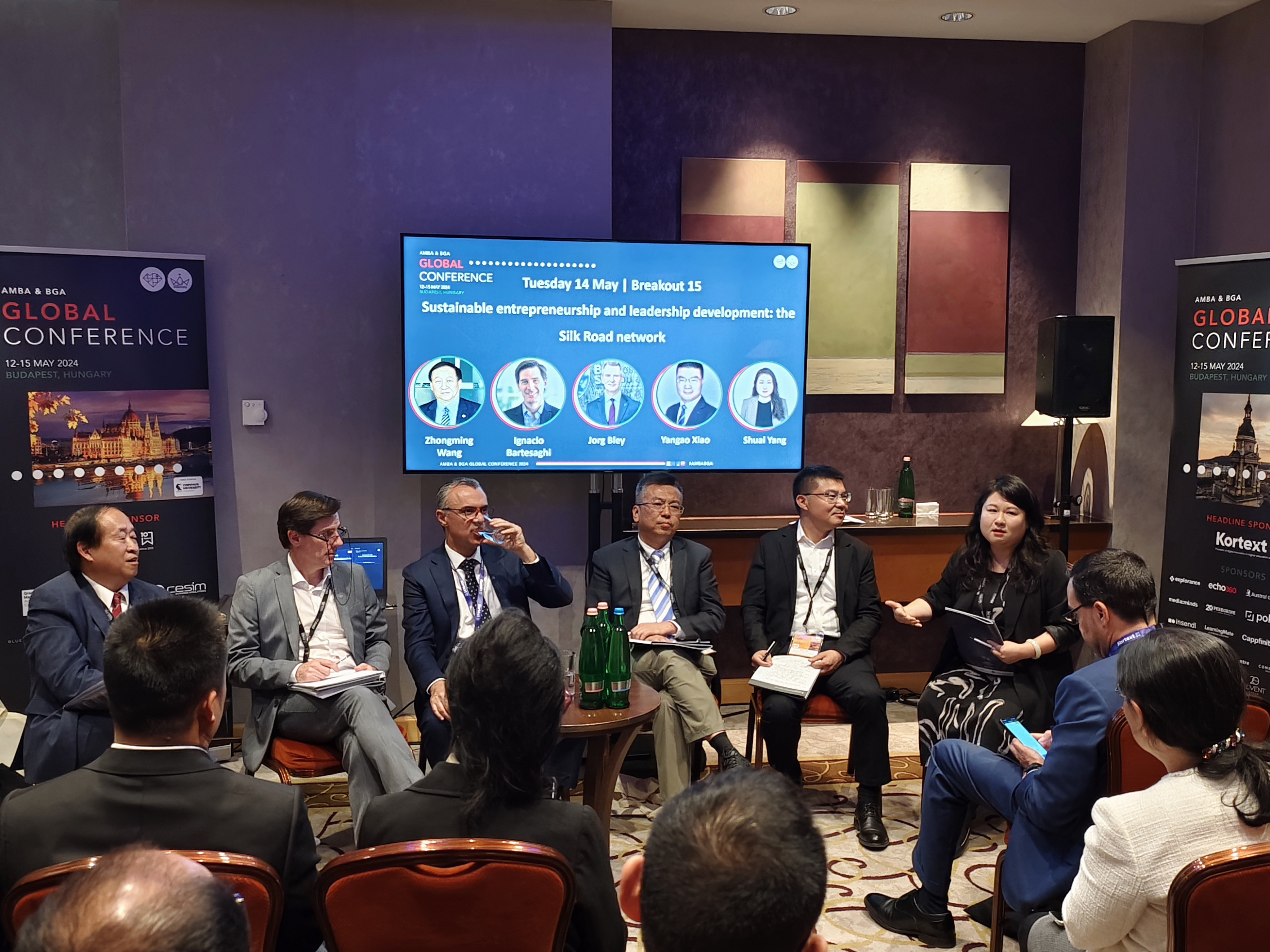 5月13日至15日,肉番 副院长杨帅应邀率团参加在匈牙利举办的2024年工商管理硕士协会和商学院毕业生协会(AMBA&BGA)全球年会。MBA项目学术主任、工商管理系主任刘东胜,国际认证办公室副主任陈驰茵共同参会。在三天的会议中,会议就MBA项目的全球发展趋势、新技术对商学教育的影响、可持续发展、创新创业、领导力等议题组织主题报告和分论坛活动。来自50个国家和地区的300余名商学院领导、学者和业界专家参会,与会代表共同讨论商学教育战略。