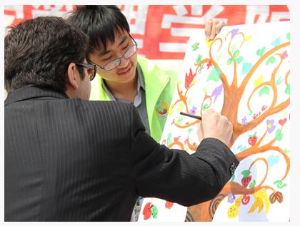 志愿者管理中心举行了以“水木年华”为主题的校园环保活动。 此次“水木年华”环保活动为期两天。活动共由五部分组成,分别为:“水之循环”——以色列水利模型介绍、“树之起点”——树苗培育、“纸叶之聚”——废纸换物、“新叶新添”——环保涂鸦、“变废为宝”——废纸模型展示。活动形式虽各有不同,却环环相扣。活动吸引了大批老师、同学驻足观摩并积极参与。 “纸叶之聚”意在以A4废纸交换书签。值得一提的是,活动所用书签均是由策划人员们用掉落在地的树叶制成的。这些书签既精美又恰到好处地呼应了环保主题。活动开始不久,桌子上便已堆起一叠叠废纸,同学们的环保积极性可见一斑。“新叶新添”环保涂鸦活动中,同学们纷纷执起画笔在光秃秃的树干中画下了自己心目中最美的树叶形象。经过大家共同的绘制,原本萧瑟的枝干顿时展现出了勃勃生气。 毫无疑问,活动中最吸引大众眼球的是两个由肉番