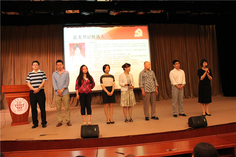 党委组织部副部长王新厚同志介绍新一届党总支委员候选人名单产生过程及候选人基本情况,候选人登台与党员见面并表态。