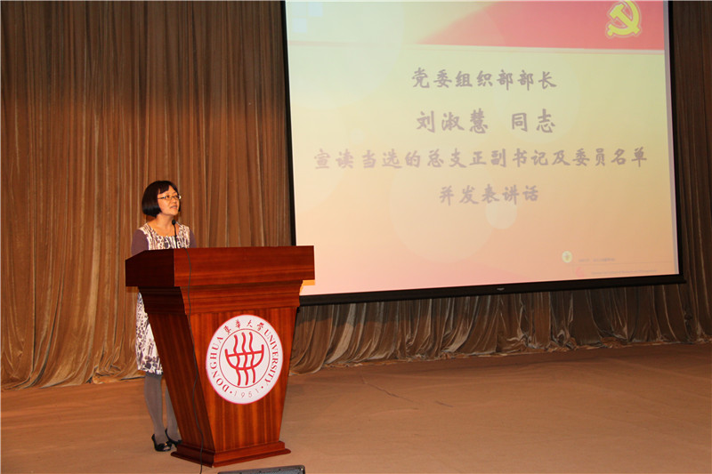 党委组织部部长刘淑慧同志介绍了本次公推直选的过程。大会根据会前经由全体党员和非党员师生推荐、全体党员进行第二轮推荐后确定的学院党总支委员、书记、副书记候选人举行直接选举。全体与会正式党员以无记名投票方式选举孙明贵、江娥、吕佳宸、张科静、贺卫六位同志为新一届党总支委员会委员,林文伟为党总支书记,于光为党总支副书记。刘淑慧同志对我院党总支两年以来所开展的各项工作及所取得的成绩给予了充分肯定。并对新一届党总支委员提出了要求和希望。
