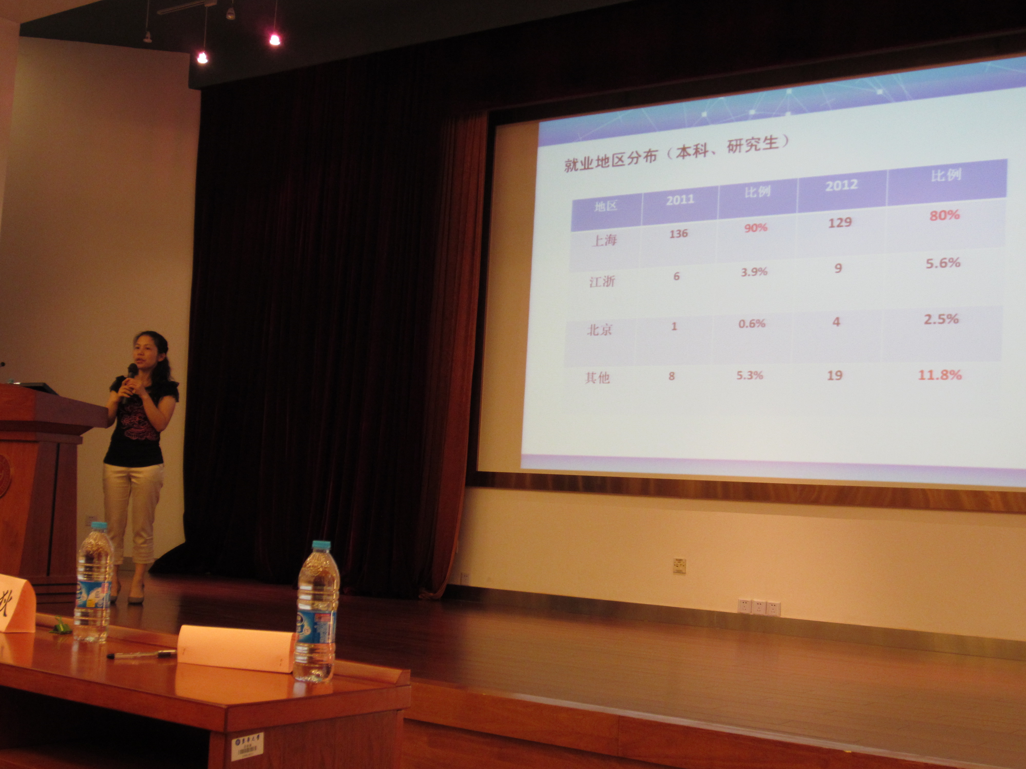 2012年9月25日下午14:00肉番 于旭日楼400演讲厅开展了肉番 硕士各专业研究生学科特点与就业情况宣讲会。宣讲会由学生工作办公室主任江娥老师、毕业班辅导员李彬老师主持,到场的嘉宾主要有管院院长孙明贵教授,管科专业张科静教授,经济系高长春教授、党总支副书记于光老师、学生工作办公室副主任王丽华老师、就业指导黄洪涛老师等。此外,宣讲会还邀请到了往届在东华成功考研及保研的学长学姐们,他们用切身经历给大家分享了各自的考研心得。 宣讲会伊始,学生工作办公室就业主管王丽华老师用精准的数字展示了研究生就业情况,让有意报考东华研究生的同学提前了解研究生毕业后的发展方向。
