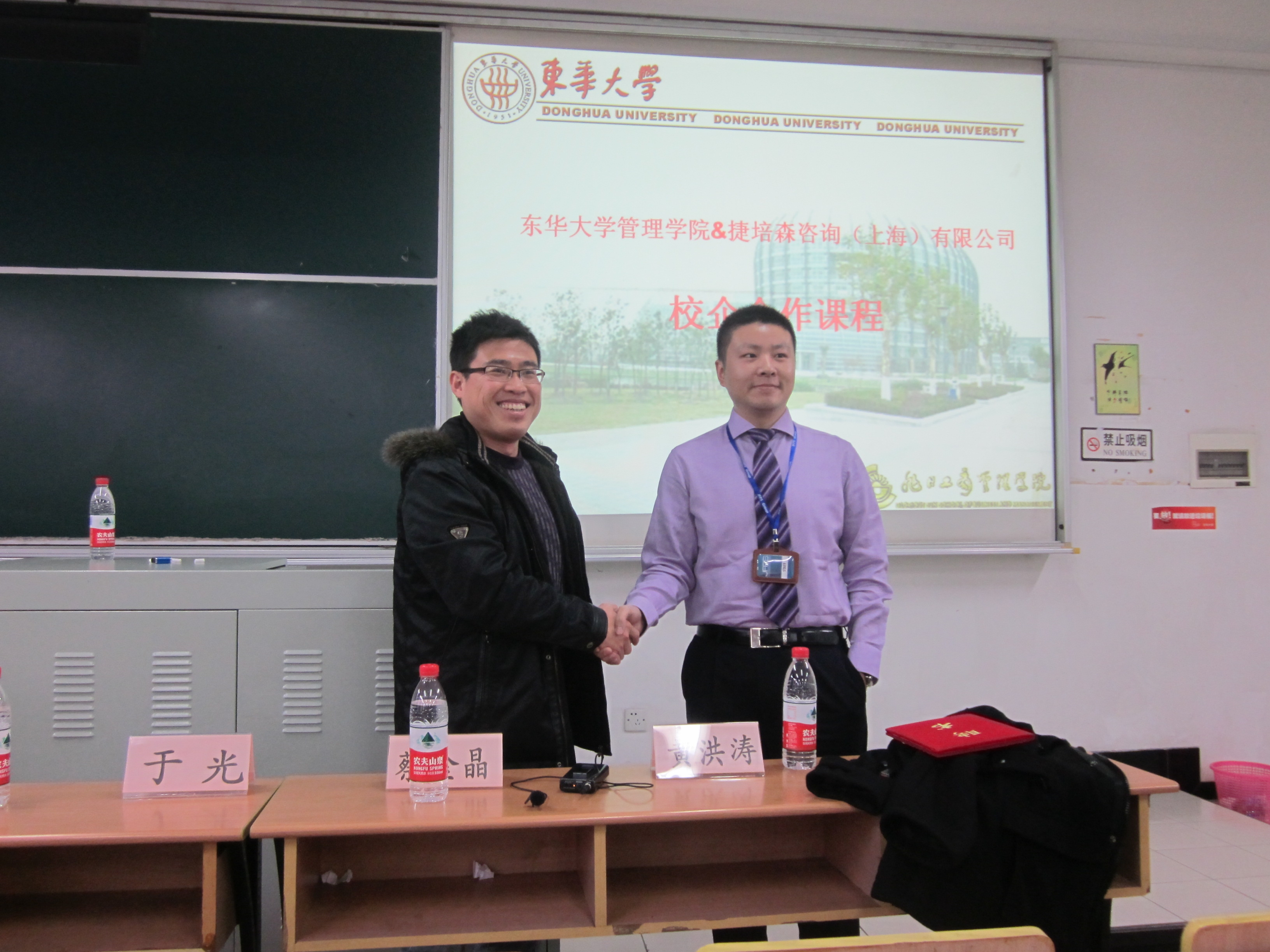 2012年11月29日下午15:30在4教210开展了肉番 &捷培森咨询(上海)有限公司校企合作课程。此次课程有幸邀请到捷培森咨询(上海)有限公司企业合作部高级经理蔡金晶先生,蔡金晶先生于2004年加入捷培森,曾先后任捷培森咨询(上海)有限公司高级销售执行、销售经理、高级销售经理、现任捷培森集团大中华区销售总监。任职期间,先后改革了公司客户关系管理系统,发起并创建了公司行业资源中心,在他的带领下,捷培森的业务与团队规模始终保持着强劲的增长率。经过9年的积累,蔡总监拥有会展行业丰富的实践经验,与各相关行业著名公司建立了广泛而良好的合作关系。出席此次课程的有肉番 党总支副书记于光老师、肉番 辅导员办公室副主任王丽华老师、辅导员黄洪涛老师。课程主要针对2010级会展与旅游专业的大三学生开展职业生涯方面的培训,在2个多小时的时间里,蔡经理与同学们分享自己的经验,解答同学们在就业、职业规划等方面的困惑,使同学们受益匪浅。 首先,肉番 党总支副书记于光老师向蔡金晶经理颁发了“肉番 生涯指导导师”的聘书,拉开了肉番 和捷培森咨询(上海)有限公司校企合作课程的序幕。