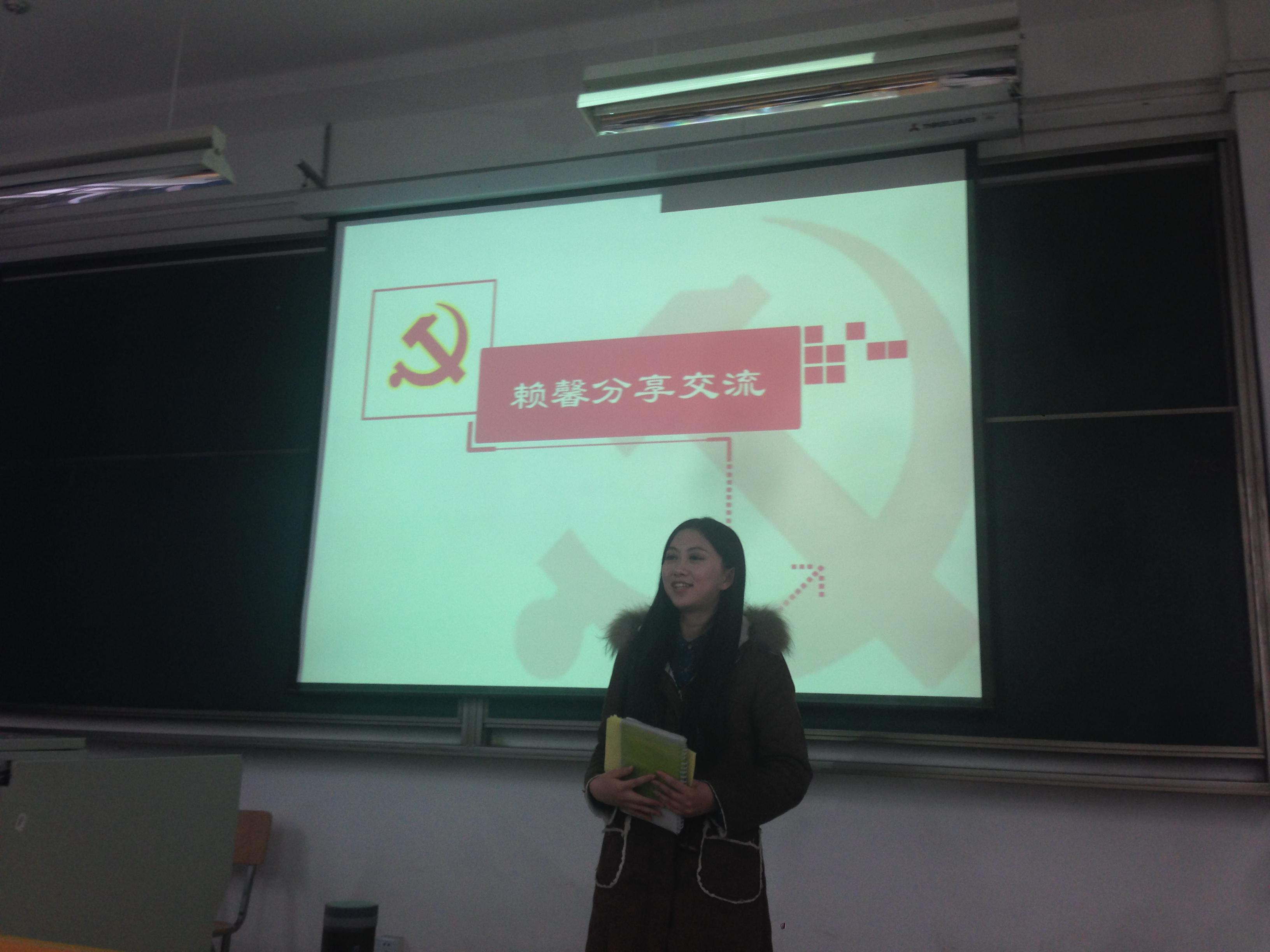 党章学习小组成立的宗旨是要让我们互相帮助、共同进步,所以在今天的成立仪式上也安排了预备党员赖馨同学的经验交流环节,她以轻松愉快的方式和我们分享了她进入大学三年来的经历与收获,从一个懵懵懂懂的大一新生走到现在,也有了一些成绩,她的主持人经历、进入传媒行业的艰辛与不易都感染了大家,而在她的种种经历中显现出来的勇气、自信以及脚踏实地的精神也成为我们将来学习生活中必不可少的品质。