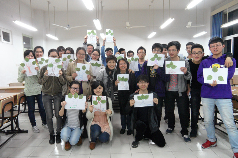如果将生命看成一个数轴,起点代表出生,终点代表离去,刻度代表年龄点,那么,既然你无法选择起点和终点,你会选择如何度过一段段岁月,你又将赋予生命何种意义?2014年4月16日晚在4教102室,辅导员江娥老师分别给会经1101班和旅游1102班开展了旨在体验生命旅程的团体心理辅导活动。两个班级结对的班导师旅游管理系的袁新敏和卢瑶两位老师也分别受邀出席了班级活动并和同学们一起体验互动。