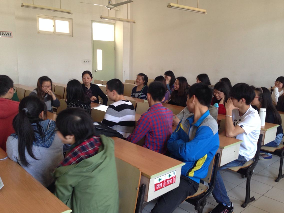 2014年4月15日下午,旅游管理1301班的全体同学召开了一次主题为专业答疑的班会。本次班会由会展与旅游管理系主任王玲教授为大家解决一些专业困惑以及学习生活上的问题。为加强师生间的联系以及加深学生对自己专业的了解,学校为大一的每个班分配了一位班导师。本次班会也是旅管1301班班导师与学生的一次座谈。 班会一开始王玲老师就和同学们亲切地交谈起来。王玲老师介绍了自己的任教情况。她怀抱着一颗爱与学生亲近的心,在大学的净土里任教近20余年。紧接着同学们开始轮流做自我介绍。有的幽默、有的内敛、有的外向……王玲老师对班里同学的性格特点及生源来源地等做了相关分析。