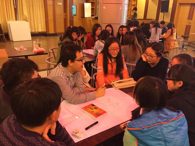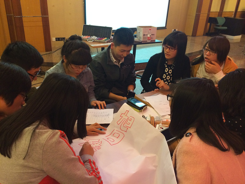 2014年3月30日晚6点半,2013-2014学年第二学期肉番 学生会第一次骨干培训拉开了帷幕。这次的骨干培训提供了一个很好的契机,有助于加强各部门之间联系。 学生工作办公室江娥老师给大家做了一个呜莎测试。全员分成了4个组,大家也大概了解了一下自己的个性,个人觉得还是挺准的。然后,活动以疯狂的市场为主线,又自愿和推选出了6位CEO,大家也各自选择了与哪位CEO合作,设计了各自想要运行的公司,传达了理念,还在不知情的情况下定下了员工们的工资,事后我才知道定工资这件事也是很有门道的。因为游戏规则是在各公司3000万资产的基础上,扣去工资和游戏过程中的费用,还掉贷款,还有获得的奖励,最后资产为正,然后根据公司剩余资产的多少进行排名。