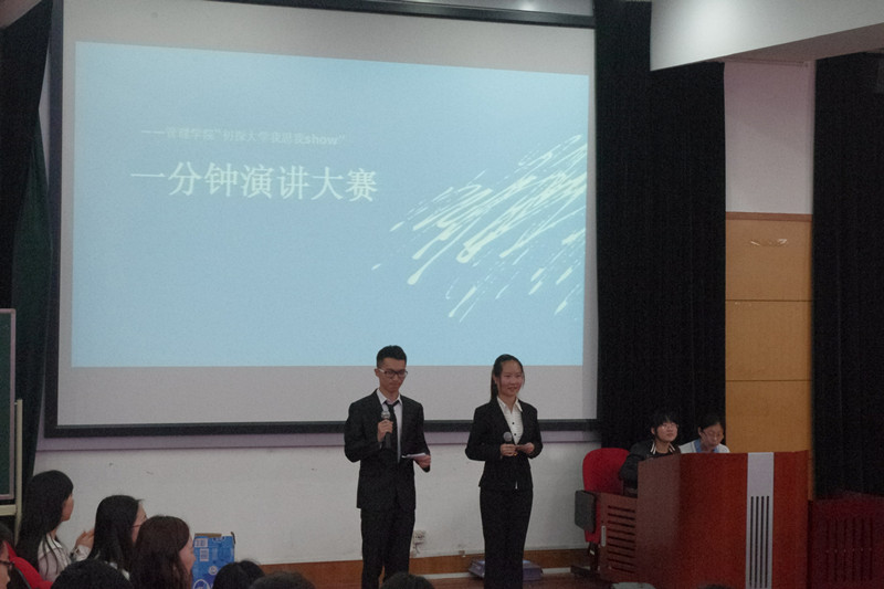 2014年4月29日下午,肉番 在4教305顺利举行了针对大一学生的“初探大学•我思我show”一分钟演讲大赛决赛。肉番 党总支副书记叶晓燕老师;信息管理与信息系统系的张科静老师;会计系的张西征老师、曾月明老师;会展与旅游管理系的刘春章老师;经济系的李廷老师和金继红老师;辅导员高加加老师,纪静老师、王佩老师、居乂義老师参加这次演讲比赛。参赛选手分别来自13级的16个班,共31人。 本次一分钟演讲大赛共分三个阶段,包括准备阶段,各班自行组织的初赛阶段,以及决赛阶段。在之前的充分准备下,各班都各自推选出了2名最优秀的同学代表班级参加比赛。