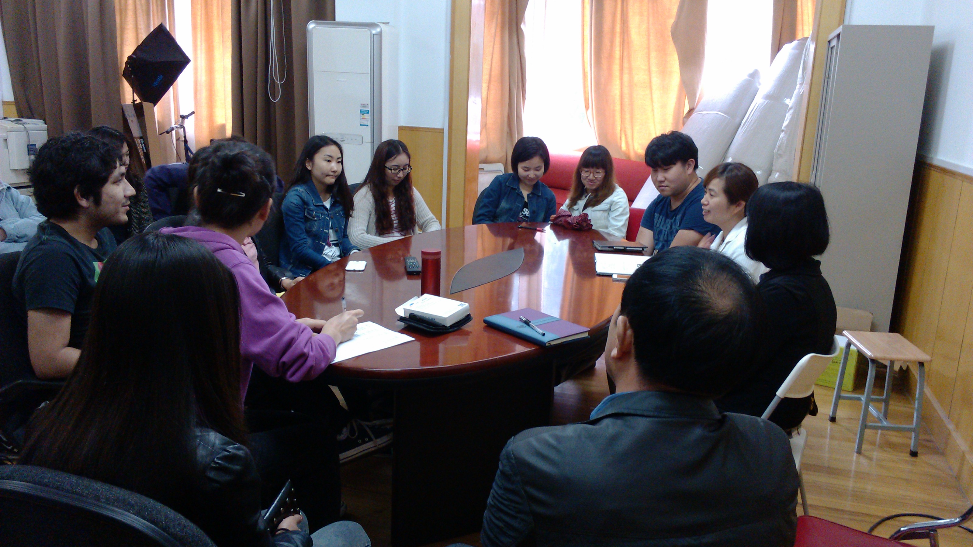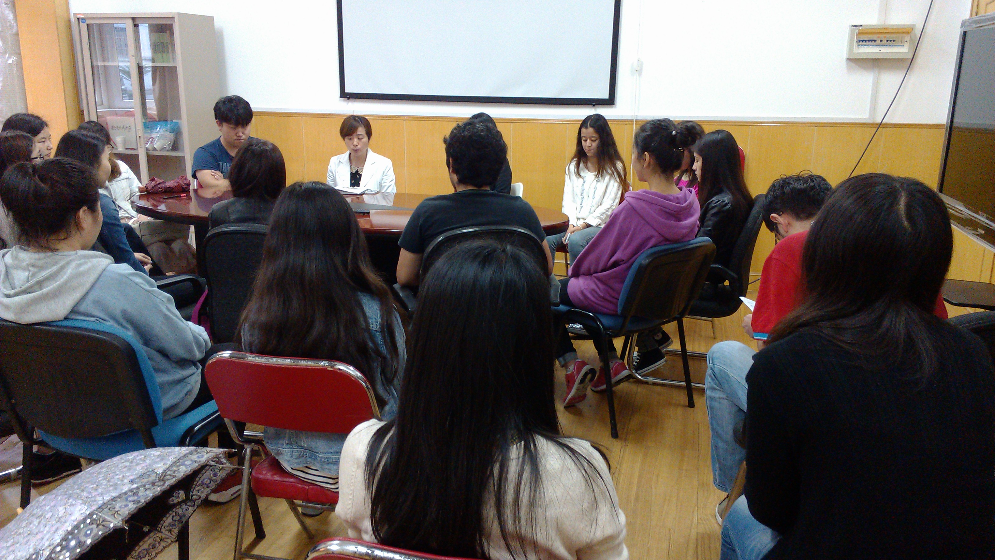 2014年5月4日中午,肉番 学生工作办公室组织了一次新疆少数民族学生座谈交流会,交流会在5118会议室举行。肉番 党总支副书记叶晓燕老师、辅导员王丽华、韩先武、吴娅琳、吴颖、王佩老师以及各年级的新疆少数民族学生参加了座谈会。 叶晓燕老师非常关心大家的生活、学习状况,在学业上鼓励同学们多向老师和同学交流学习;希望大家利用在校资源努力学习。