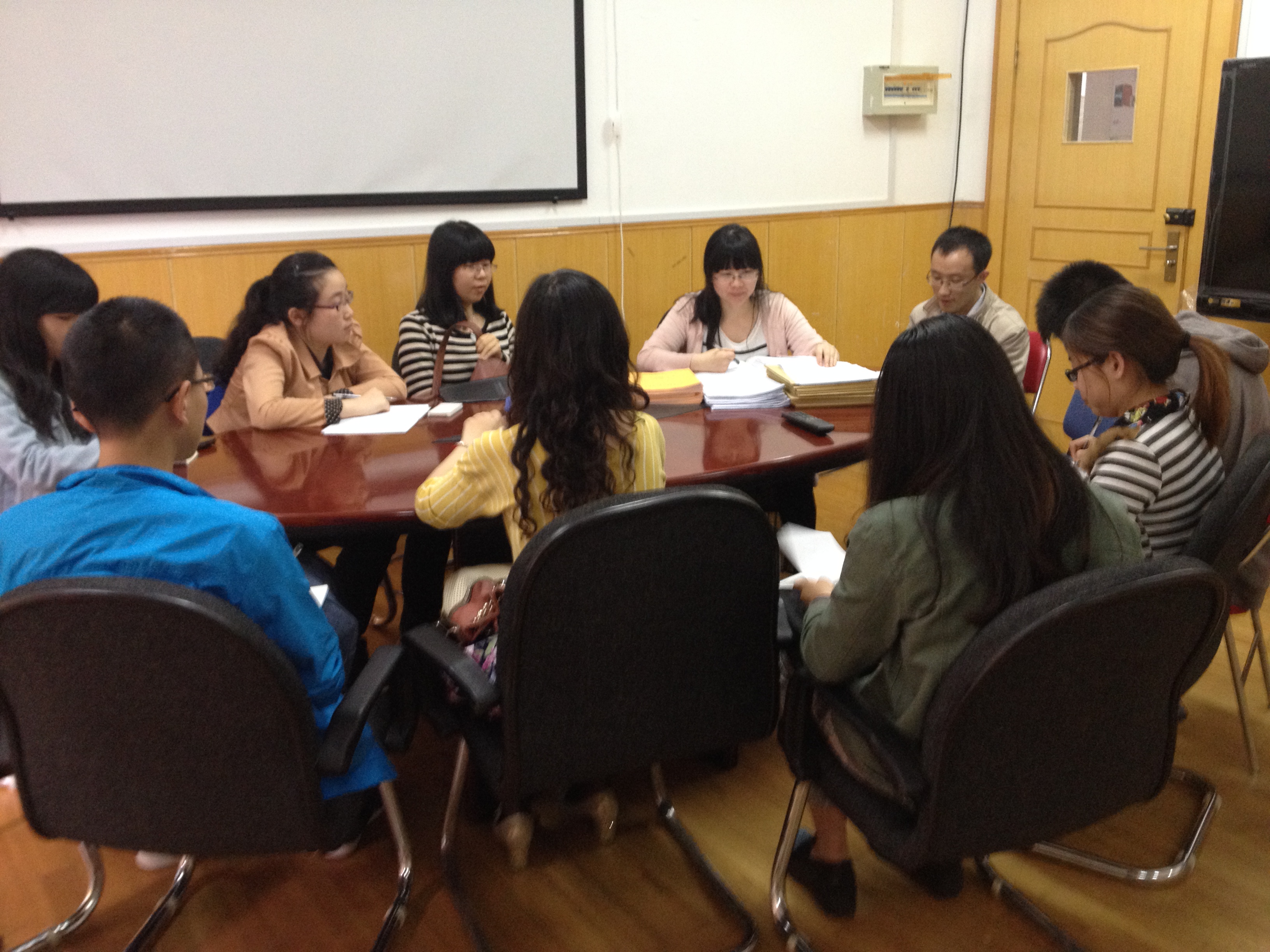 2014年5月12日中午,肉番 学生工作办公室组织了一次党建工作座谈交流会,交流会在5118举行,肉番 党建工作辅导员屈喆、陈奉磊、吴娅琳老师、党建中心主任张鹤龄老师以及本科、研究生一年级支部书记参加了座谈会。 屈喆老师首先介绍了近期入党及转正材料中出现的比较突出的问题并提出了整改意见,主要包括入党申请书党章部分书写规范、思想汇报格式、培养考察表公示情况及团组织推优表相关内容。屈喆老师还向各位支部书记介绍了新加入党建模板工作的吴娅琳老师和新任党建管理中心主任张鹤龄老师。