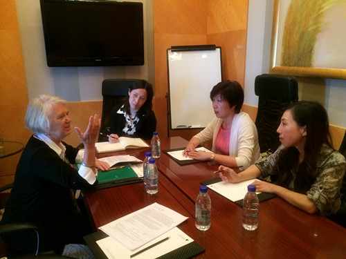 10月8日下午沈蕾副院长带领国际交流中心团队赴明天广场万豪酒店与AACSB副总裁亚洲区负责人Eileen Peacock教授亲切会谈,就肉番 AACSB认证的相关事宜与对方交换了意见。 我院自2011年加入AACSB组织成为会员学校以来一直致力于将国际化标准应用在日常教学、科研环节,引入了很多年轻人才加入我们学院,还成立了四个中心,填补了校友资源、产学研联合等工作的空白。 会谈持续了近2个小时,国际交流中心团队成员纷纷提出了很多问题,Peacock教授一一作答为大家解答了疑惑,气氛非常热烈。当谈到中方和外方对教学方案的制定标准的理解存在文化差异时,大家颇感无奈,但更意识到自己的差距,渐渐明确了今后努力的方向。 此次访问为我院国际认证工作打开了另一扇窗,与AACSB副总裁的会面不仅是一次面对面解答疑惑的机会,也是比较差距,掌握更多一手资料的过程。通过现场问答,很多困惑迎刃而解。会议结束后,大家纷纷表示工作更有动力和方向,也希望今后有更多机会参加这样的活动。
