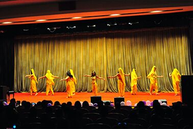 晚会中,管院的研究生们也带来了别具特色的 《小苹果》,这首最近风靡一时的歌曲再次high翻全场。大一新生组成的乐队带来的歌曲《iridescent》、吉他社乐队带来的《自由》,一系列歌曲节目可谓是精彩纷呈。舞蹈串烧、管科的扇子舞为观众们带来了不一样的视觉享受。作为今晚唯一一个语言类节目,脱口秀《东华将我崴了脚》着实赚足了人气,令人捧腹大笑。最后,由步知火舞社团组成的舞蹈团队为我们呈上了一场视觉盛宴,炫酷的舞蹈,沸腾的音乐,现场气氛达到顶点。