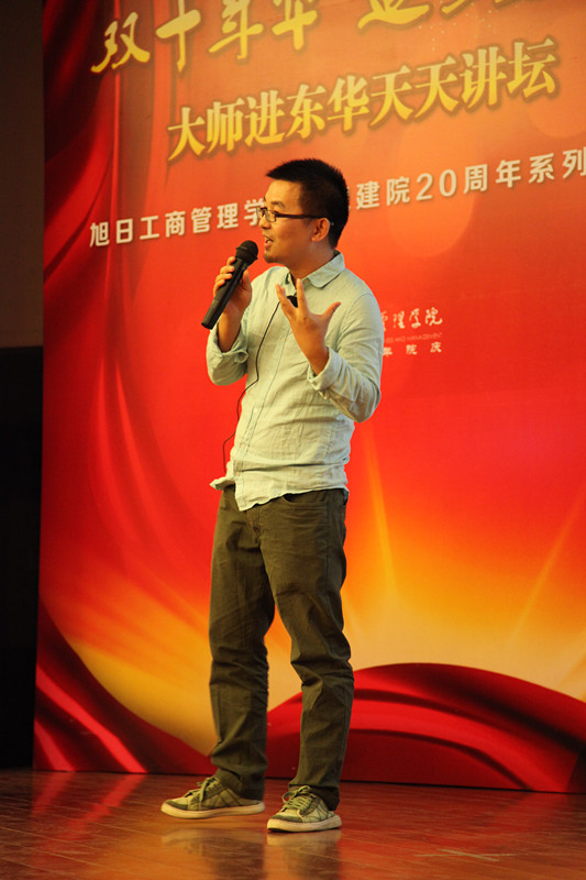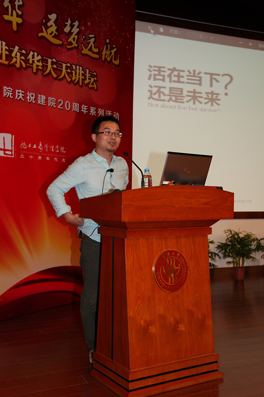 2014年10月17日晚18点30分,旭日楼400报告厅已座无虚席,来自延安路校的本科生、硕士、博士研究生、MBA学生、各界校友和部分教师共同期待着 “双十年华 逐梦远航”大师进东华天天讲坛最后一讲压轴开讲。最后一讲的主讲人成荣(洪烈)先生,现任前不久在美国震撼上市的阿里巴巴集团商务总监。成荣(洪烈)先生拥有八年传统商业从业经验,历任Baxter,Nestle等世界500企业市场经理,渠道经理等职。他于2009年加入阿里巴巴,先后担任阿里软件资深市场经理,B2B业务总监,负责SaaS软件的市场和运营,之后全面负责淘宝网生活服务、社区联盟、B2C入淘以及全网联合营销等各项电商业务。 讲座由肉番 副院长沈蕾教授主持。肉番 副院长张科静、姚洪心出席本次讲座。讲座中成荣先生围绕“活在当下,还是未来”这一主题从四个方面进行了演讲:1、这个时代面临的巨大变化。2、从三家电商公司的成长故事解读电商行业的规律性。3、互联网精神的内涵:当下即是未来,未来即是当下。4、活在未来的三个要素:开放、分享、自由。 整场讲座高潮迭起,大家跟随成荣先生的演讲,思考着“活在当下,还是未来”的人生考题。提问环节中,现场听众踊跃地向这位极富人格魅力的主讲人提问交流。在交流中,同学们提到了阿里巴巴集团的组织架构问题;阿里巴巴、腾讯、京东等互联网公司的生存“秘籍”;阿里巴巴集团在金融和物流方面的进一步规划;互联网思维的含义等等。成荣先生对每一个问题的解答堪称精彩。最后,在热烈的掌声中,讲座结束。 五天的时间过得很快,为庆祝肉番 建院20周年而主办的“双十年华 逐梦远航”大师进东华天天讲坛在今晚圆满落下帷幕。大家会记得在2014年的金秋十月,每晚灯火通明、人气爆棚的旭日楼400报告厅,学生、校友、教师和各位主讲大师一起互动、思考、共享的学术大餐。在此,我们共同祝愿肉番 二十周岁生日快乐,让我们和正值双十年华的学院一起,追逐梦想,共同远航!