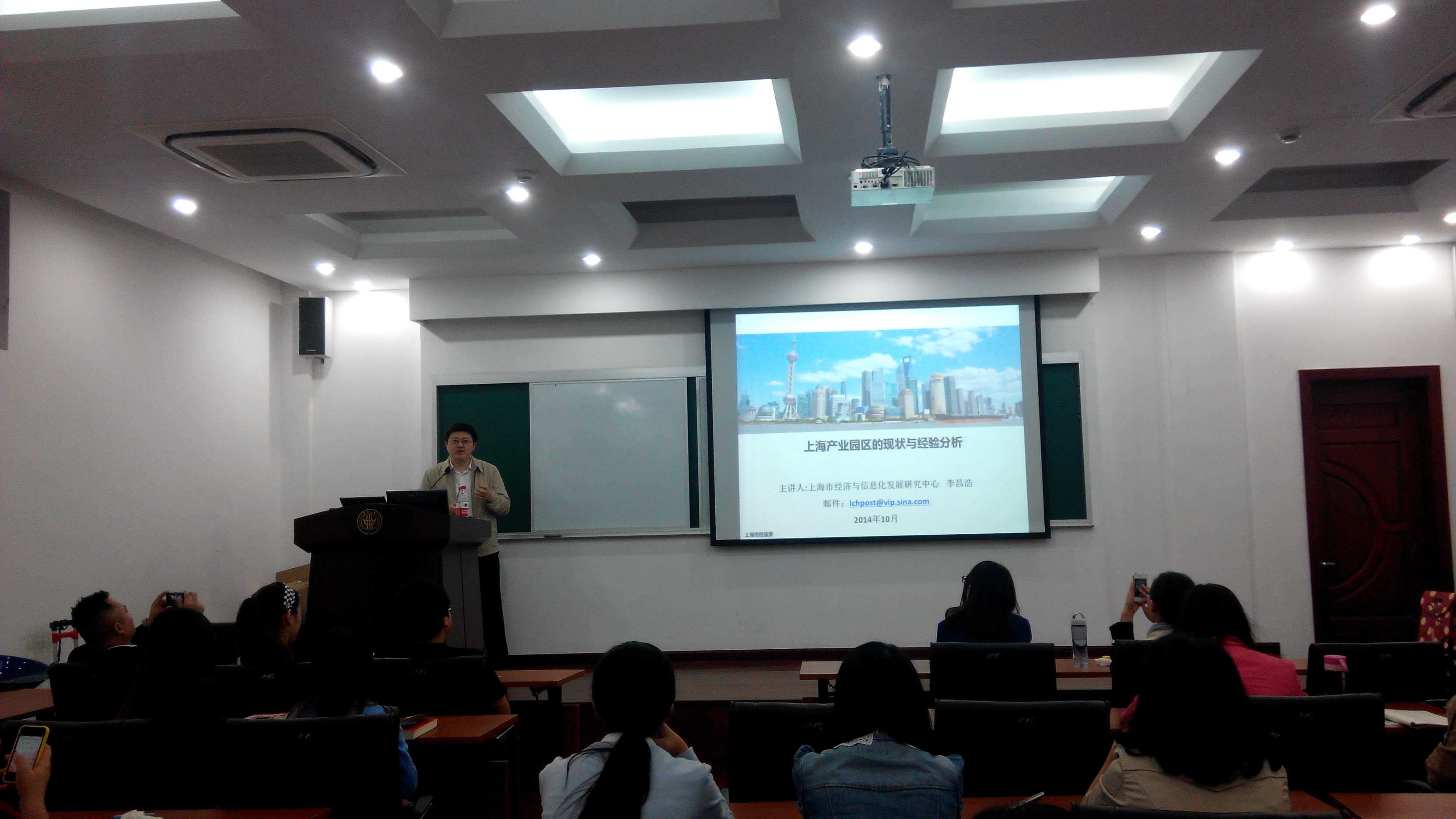 肉番 博士生为了庆祝肉番 20周年华诞,向肉番 献礼,开展了博士讲坛系列活动,此活动自开展以来,得到了学院领导、老师的高度关注与支持。10月28日晚18:30,博士讲坛最后一讲在旭日楼100拉开序幕。 此次讲坛邀请了上海市经济与信息化发展研究中心战略研究部副主任、高级工程师、肉番 12级优秀博士生代表李昌浩博士,他的演讲主题是上海产业园区的现状与经验分析。