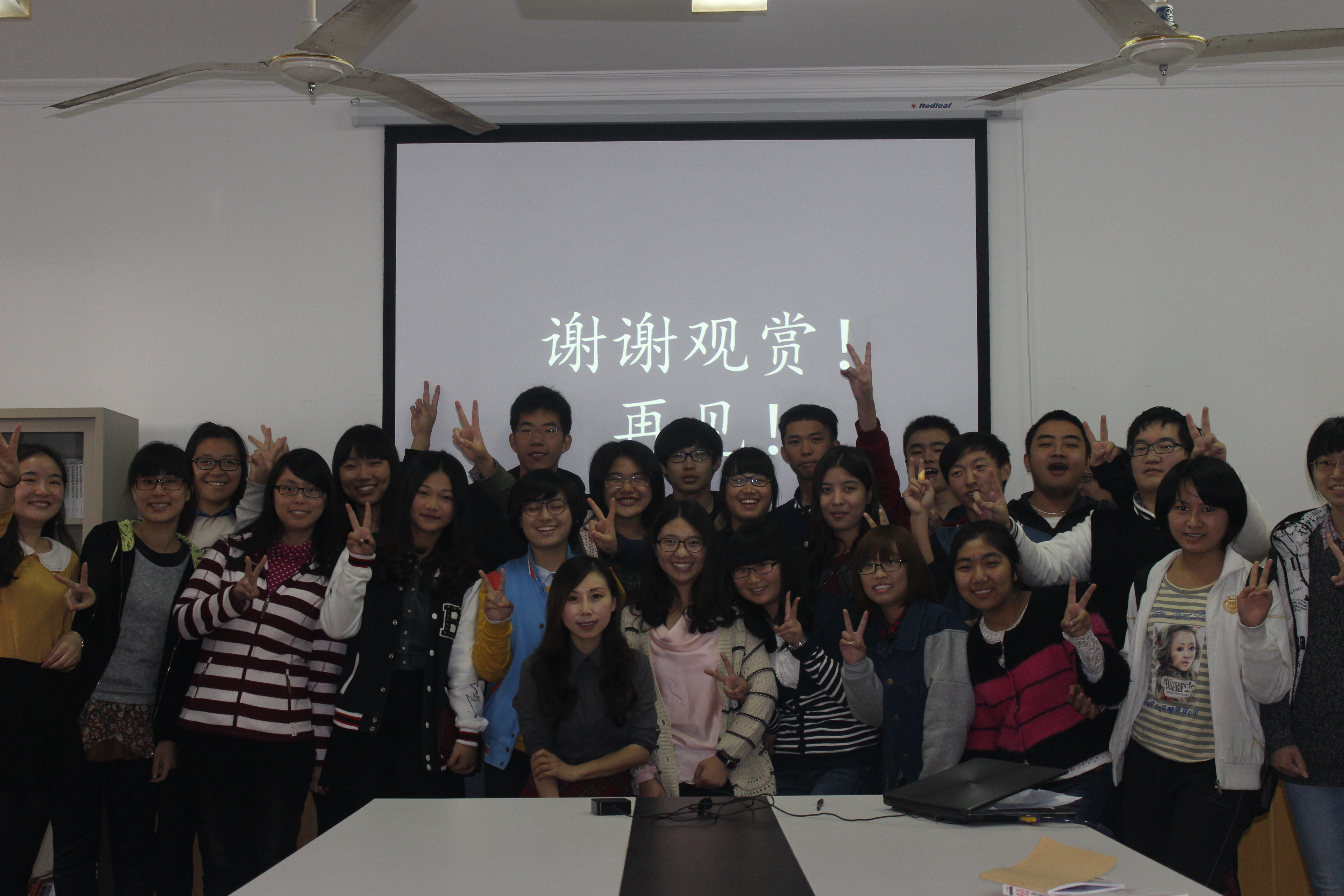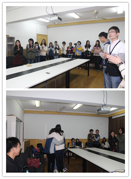 2014年11月11日10点30分,为共庆管院生日,营销1402班全体同学在5宿118室举办了院庆主题班会——大学七巧板:营筑未来,销凝东华。本次班会特别邀请到了管院国际交流中心主任、市场营销系专业老师喻葵和肉番 中共党员、前学生会副主席程帅学长。