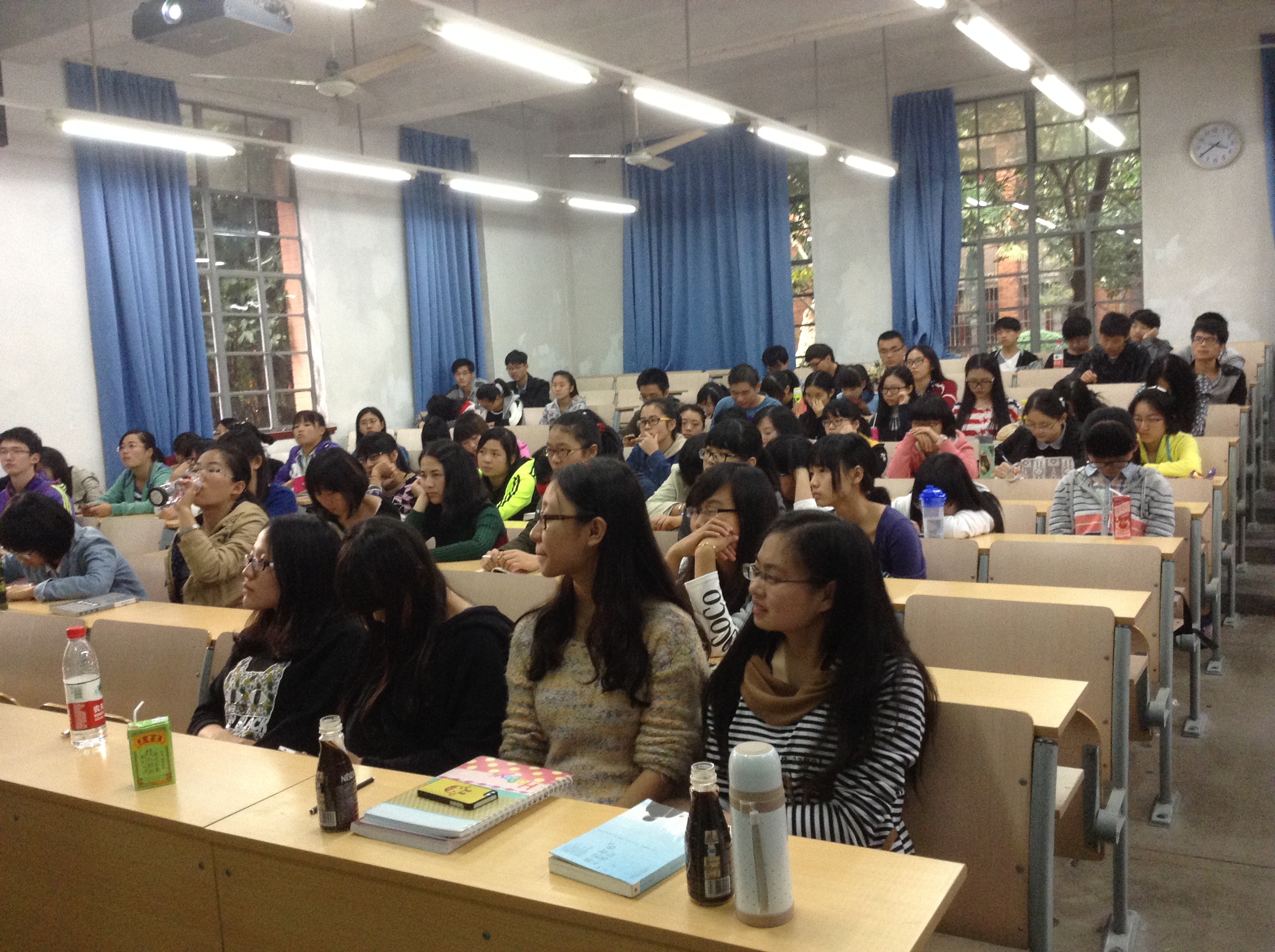 2014年11月6日15:30,由我校肉番 王丽华老师主讲的“谁的青春不迷茫”主题讲座在延安路校区一教109教室开展,参加讲座的同学主要是管理科学与工程类专业大一年级学生,现场气氛热烈。讲座开展过程中,王丽华老师主要通过PPT向同学们展示了演讲内容及主题,并通过视频等方式辅助表达主题。