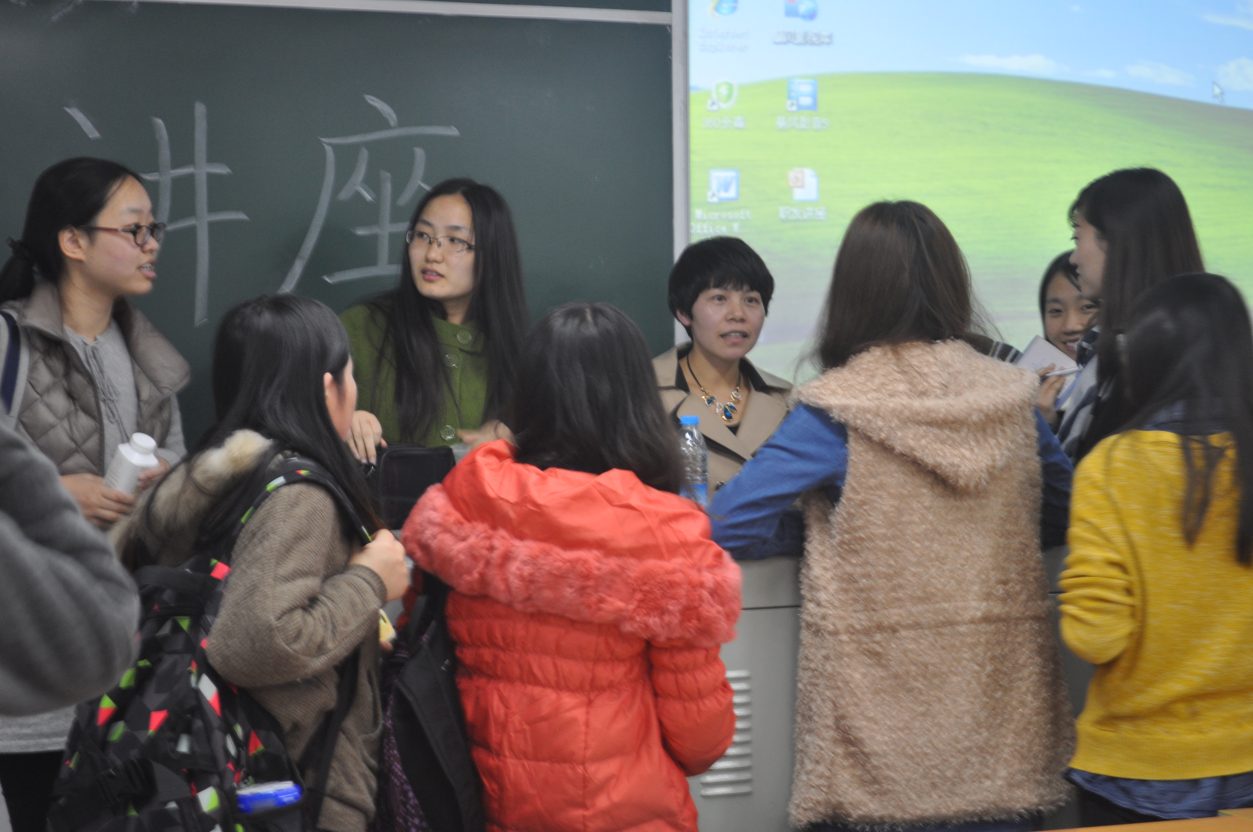 整个讲座幽默而不失教育意义,王老师把所有相关的经验倾囊相受,给本科和研究生同学了上了生动而有意义的求职课,极大的鼓舞了同学们找实习、找工作的士气,这也正是我们在低迷的就业大环境中最需要的。 随着时光飞逝,两个小时的讲座很快就接近尾声了。同学们依然意犹未尽,围在老师身边积极提问,期望能够得到更多的经验,解答更多的疑惑。 |