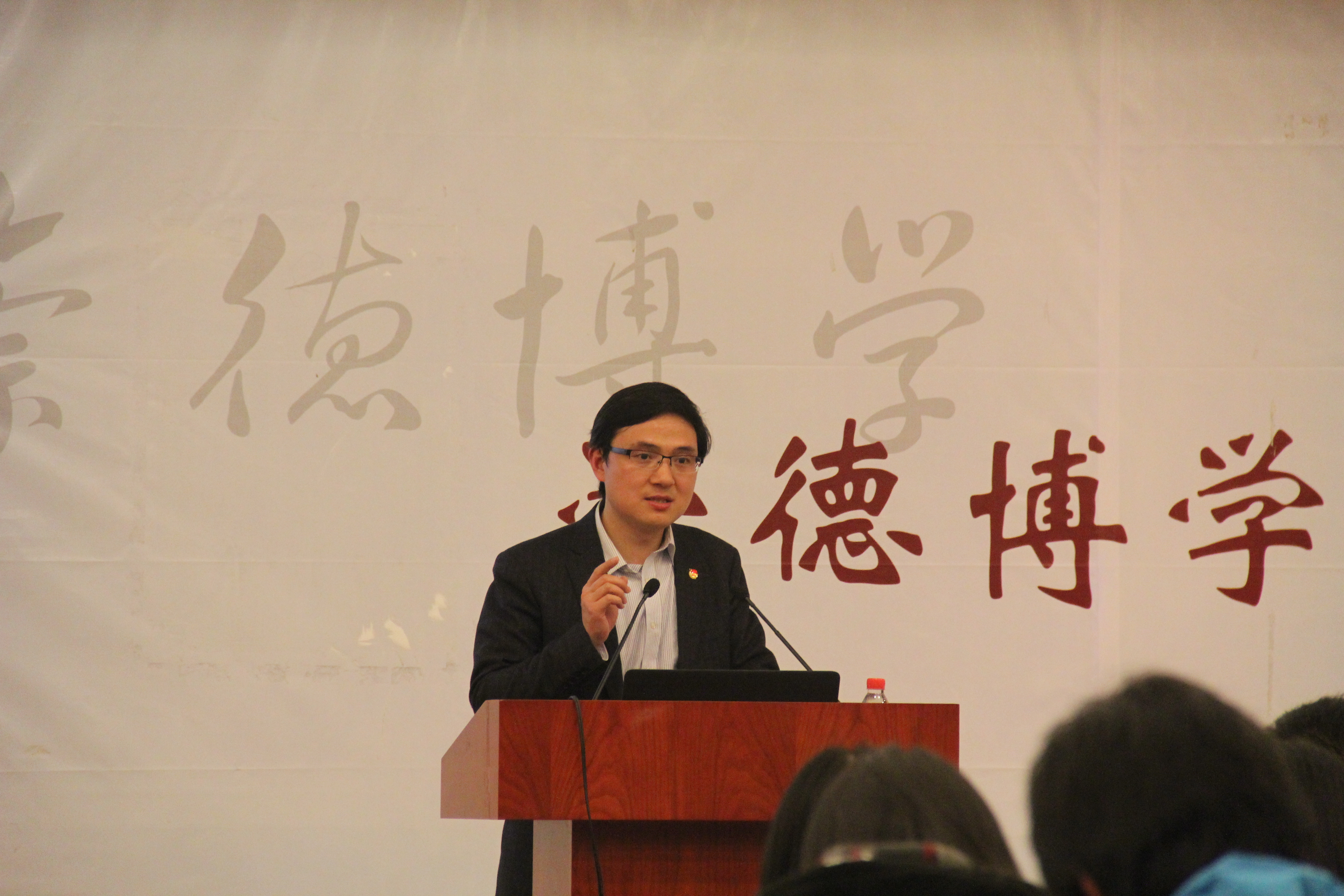 2015年3月26日晚6:30,“新媒体平台建设及舆论引导”讲座暨菁英领航计划第一季开班仪式在肉番 第三教学楼四楼报告厅隆重举行。本次讲座的主讲人是现任共青团上海市委员会宣传部部长陈立俊。何为新媒体平台,如何建设,如何对此进行正确的引导,陈部长由浅入深,为大家进行了细致的讲解。 讲座伊始,陈部长向大家介绍了“青春上海”——共青团上海市委员会官方微信平台。“青春上海”是上海市各类团建工作和青年活动动态发布的重要平台,其每日的推送头条保持着三千人以上的阅读量。在这背后,是上海团市宣传部平台运营团队坚持不懈的辛苦付出。