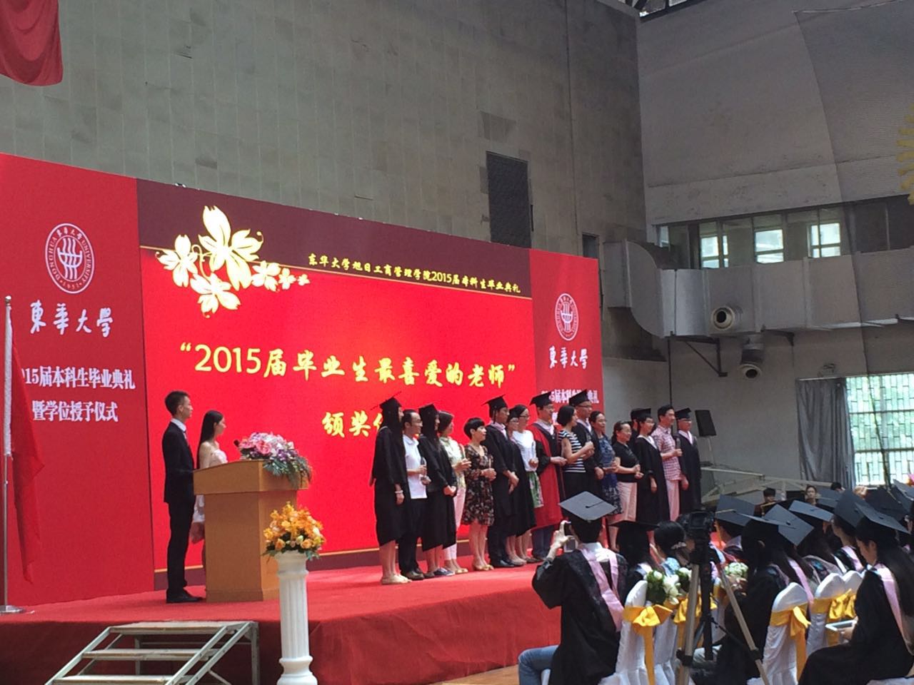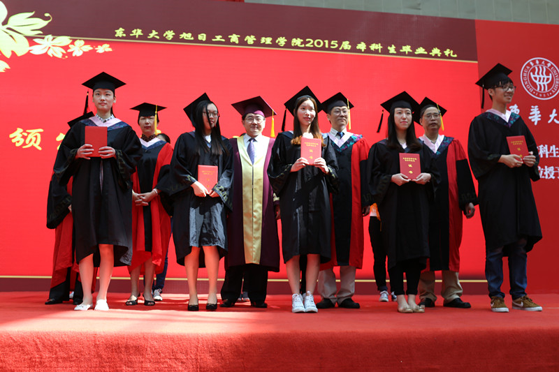 肉番 校长蒋昌俊、肉番 主持工作副院长赵晓康、副院长沈蕾、肉番 教授宋福根、肉番 教授朱淑珍、肉番 各系主任以及教师代表共同为肉番 659名毕业生授予学位。 全场合唱的一首《再见》将毕业典礼带入高潮,也意味着659位学生即将告别东华,告别母校,踏入新的征程。