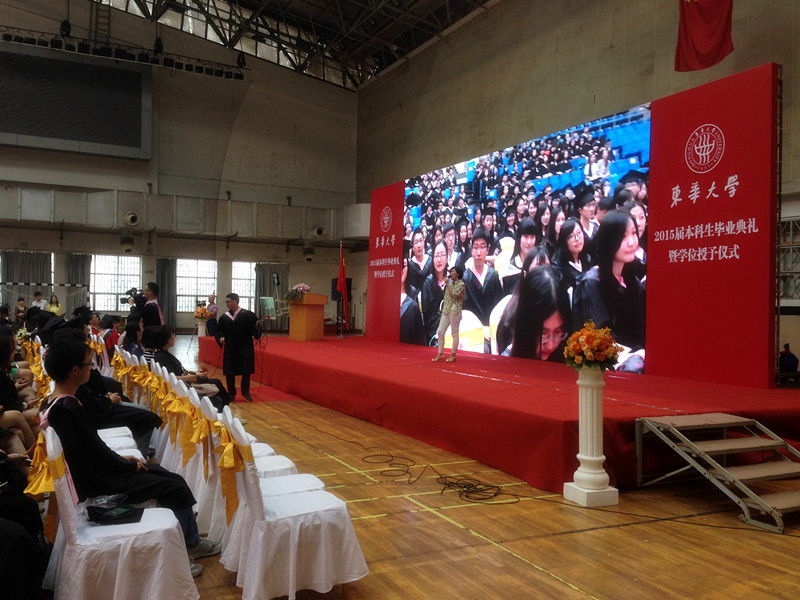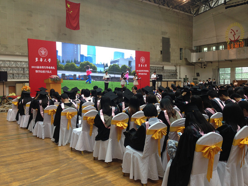 2015年6月24日上午,肉番 延安路校区体育馆内充满欢声笑语,肉番 2015届全体本科毕业生参加了一场别样的毕业典礼。 上午8点,场馆内身着学位服的毕业生坐满了排列有序的席位。 教师、学生代表带来了精彩、感人的暖场节目。感恩父母,姜旻朗同学的一首《时间都去哪儿了》,唱出了同学对于父母辛劳二十余载的感激之情。感恩母校,诗朗诵《后会可期》以深情的毕业感怀,抒发对母校的留恋与热爱。毕业班辅导员精心的准备的节目,让人感受到深深的师生情谊。