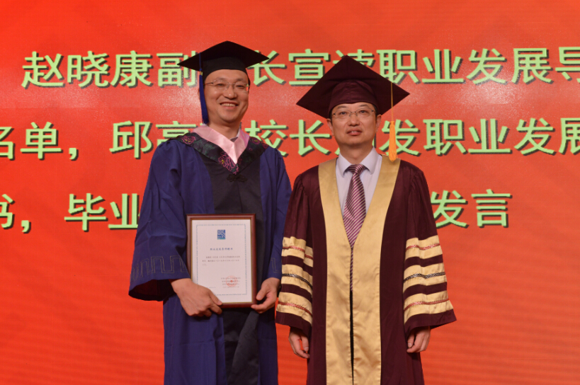 激动人心的学位授予仪式在舒慧生主任宣读了学校学位评定委员会决议之后隆重举行。随着激昂的加冕进行曲,毕业生们身着硕士服,头戴硕士帽,逐个上台,由邱高副校长,舒慧生主任、赵晓康副院长郑重地为他们颁发学位证书和拨帽穗,并与每位毕业生分别合影留念,定格难忘的瞬间。这是庄严而神圣的时刻、这是值得一生珍藏的瞬间,每一个微笑的脸庞和骄傲的神情都昭示着学子们此刻的激动、振奋和荣耀。