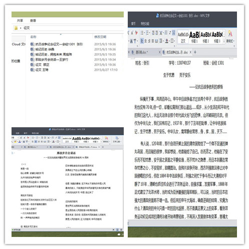 其次,同学们通过征文的形式表达了自己对世界反法西斯战争胜利70周年的激动之情,其中有同学采用诗文的形式表达了自己对祖国的祝福,对和平的赞美。